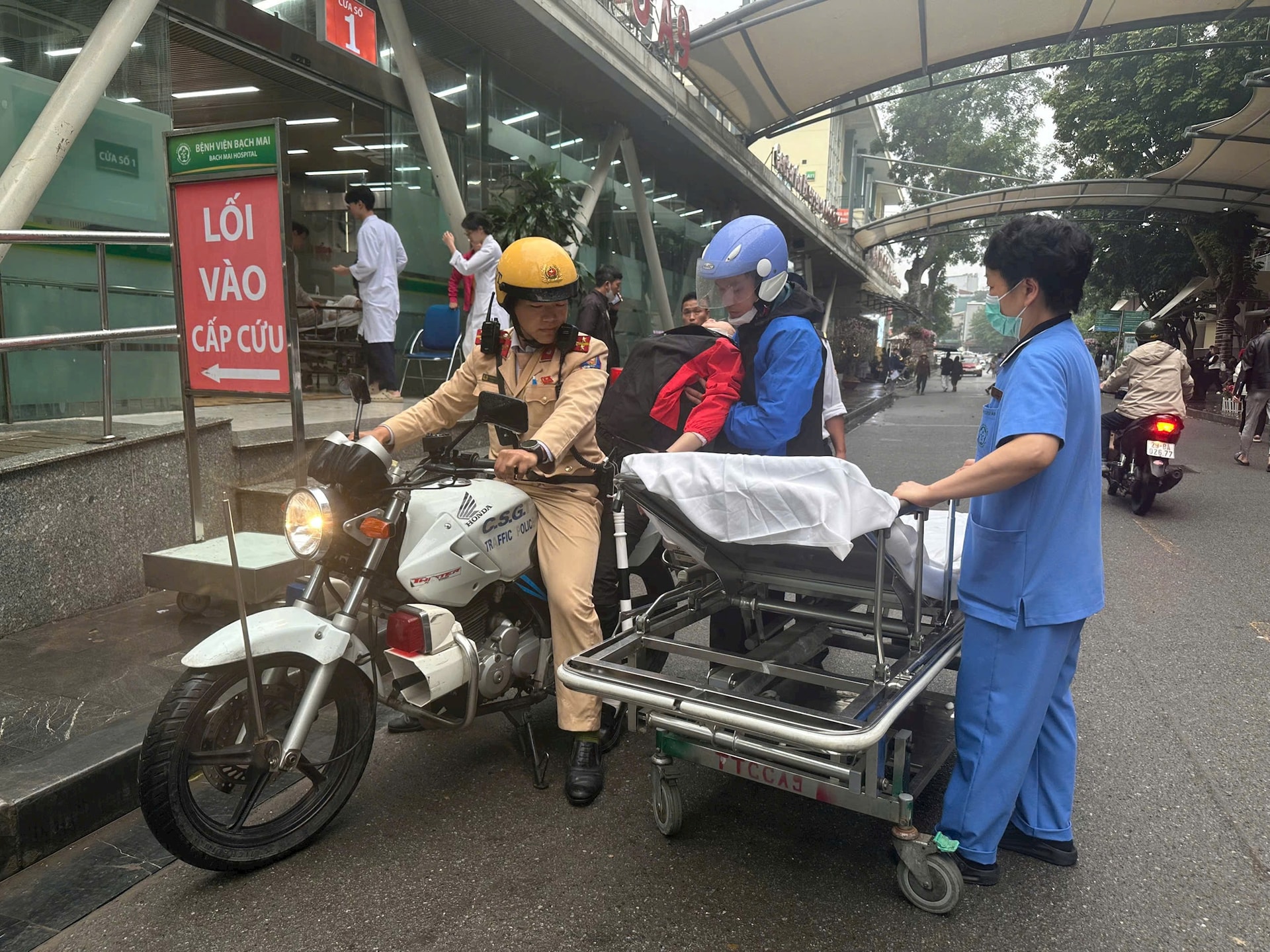 Nhận định đây là tình huống bệnh lý có thể diễn biến nguy hiểm, Đại úy Trần Tiến Đạt và Đại úy Đỗ Văn Phương đã nhanh chóng trao đổi với chỉ huy đơn vị, sử dụng xe công vụ chở hai vợ chồng anh H. đến Bệnh viện Bạch Mai kịp thời. Gia đình bệnh nhân bày tỏ sự xúc động, gửi lời cảm ơn sâu sắc tới cán bộ Cảnh sát giao thông đã tận tình hỗ trợ trong thời điểm nguy cấp.