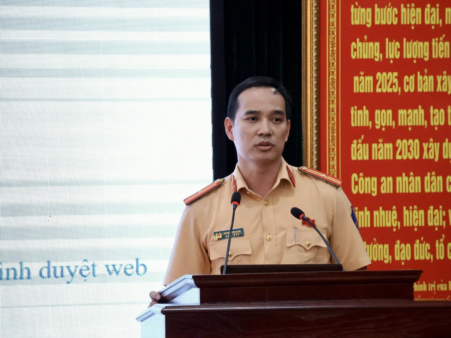 Trung tá Đào Việt Long, Phó Trưởng phòng CSGT phát biểu khai mạc hội nghị.