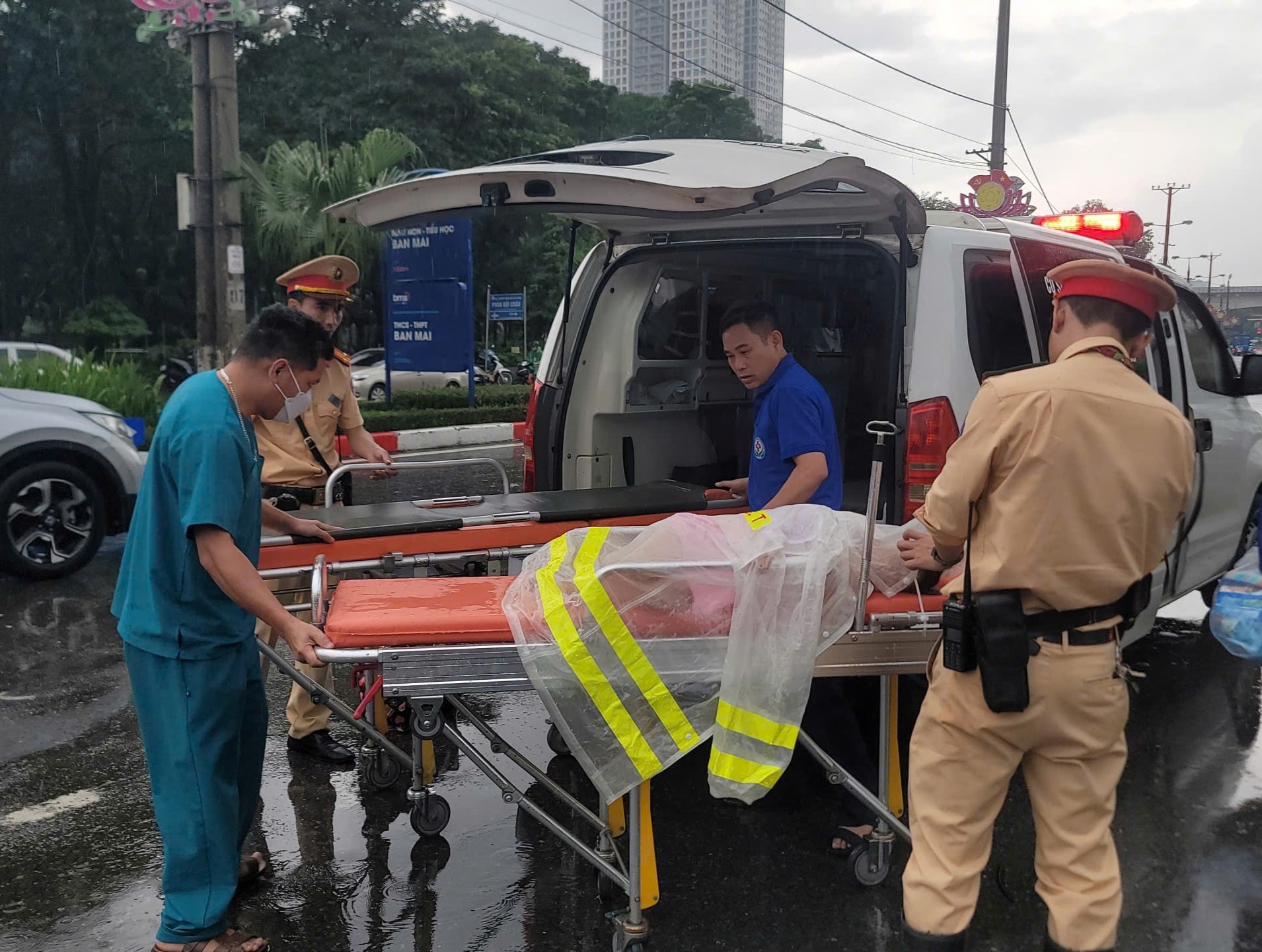 Nhận tin có hai cháu bé 5 tuổi cần được cấp cứu tại Bệnh viện Việt Đức và Bệnh viện Bệnh Nhiệt đới Trung ương nhưng bị mắc kẹt do mưa ngập tại Bệnh viện K – cơ sở Tân Triều, Tổ công tác thuộc Đội Cảnh sát giao thông đường bộ số 7 đang làm nhiệm vụ tại khu vực ngã ba Cầu Bươu - Xa La (phường Kiến Hưng) đã lập tức dùng xe chuyên dụng đưa các cháu vượt qua điểm ngập gần 2km đến khu vực xe cấp cứu chờ sẵn, để tiếp tục đi đến bệnh viện.