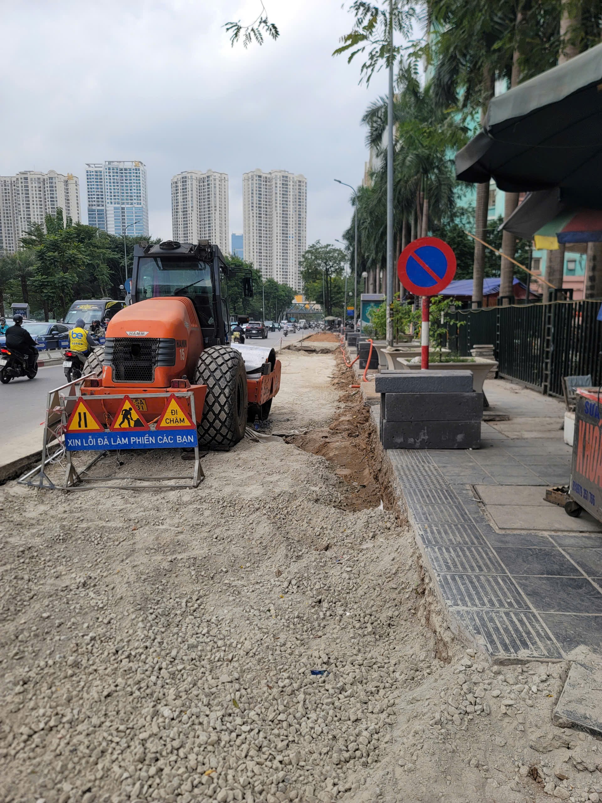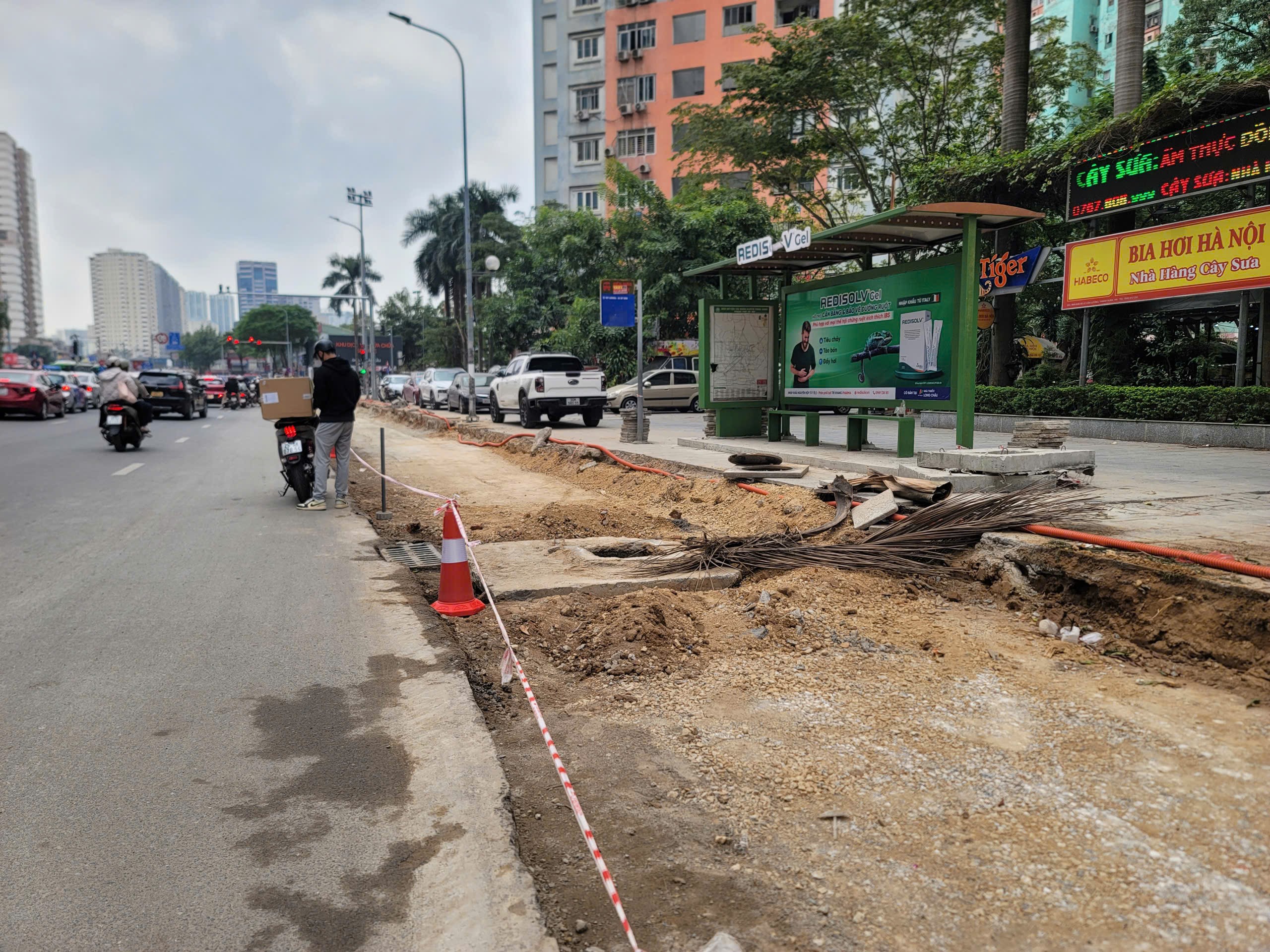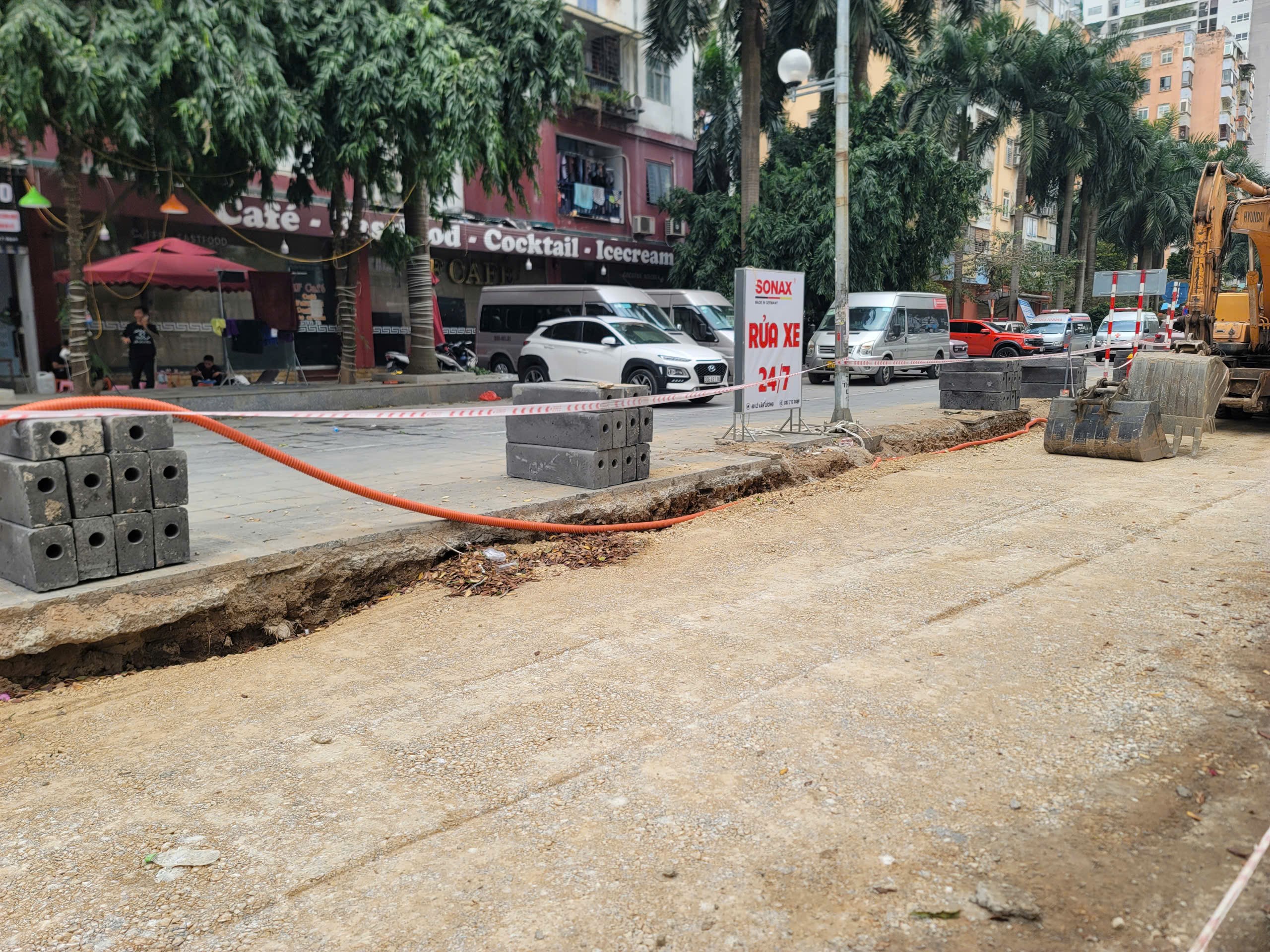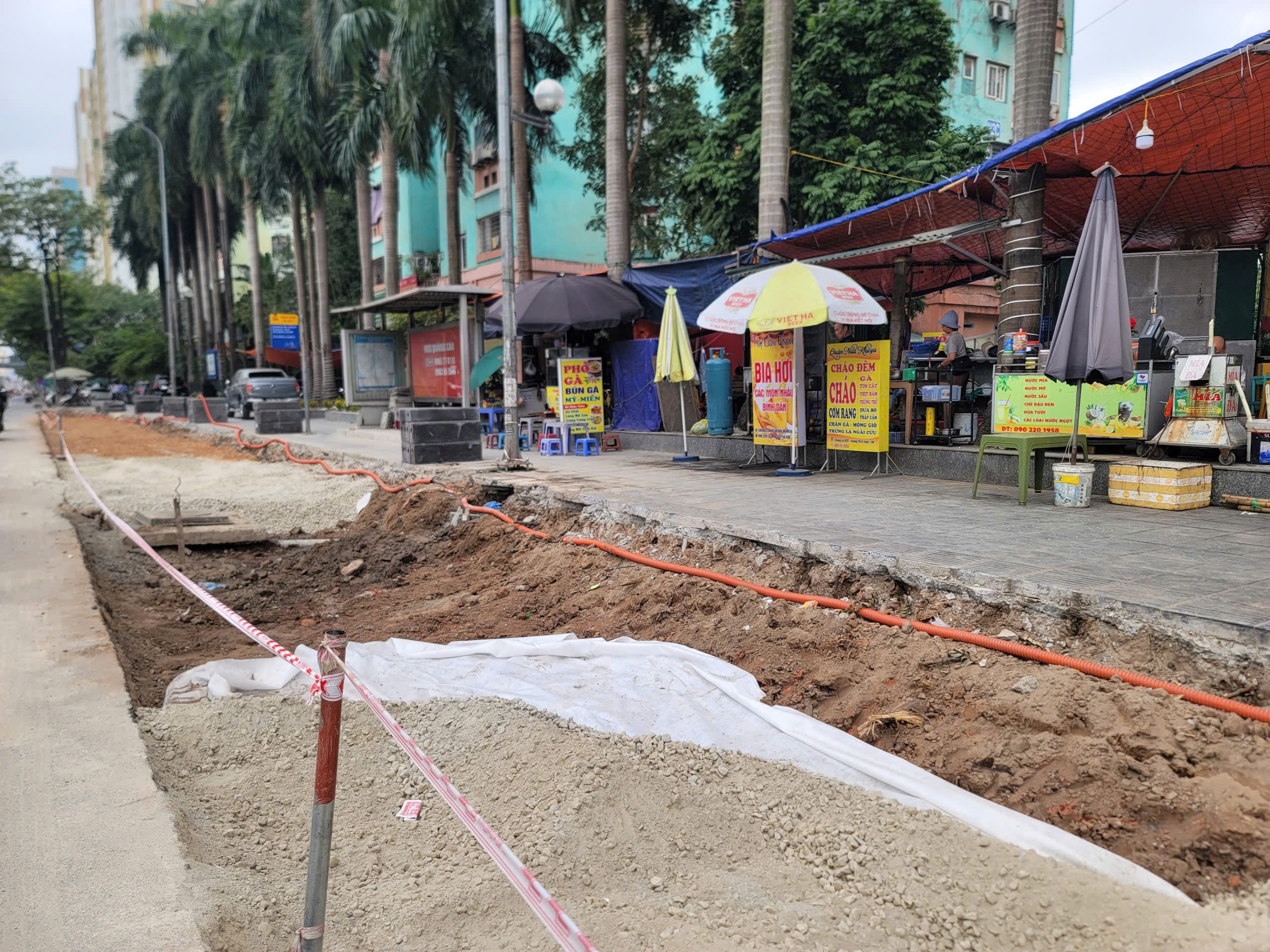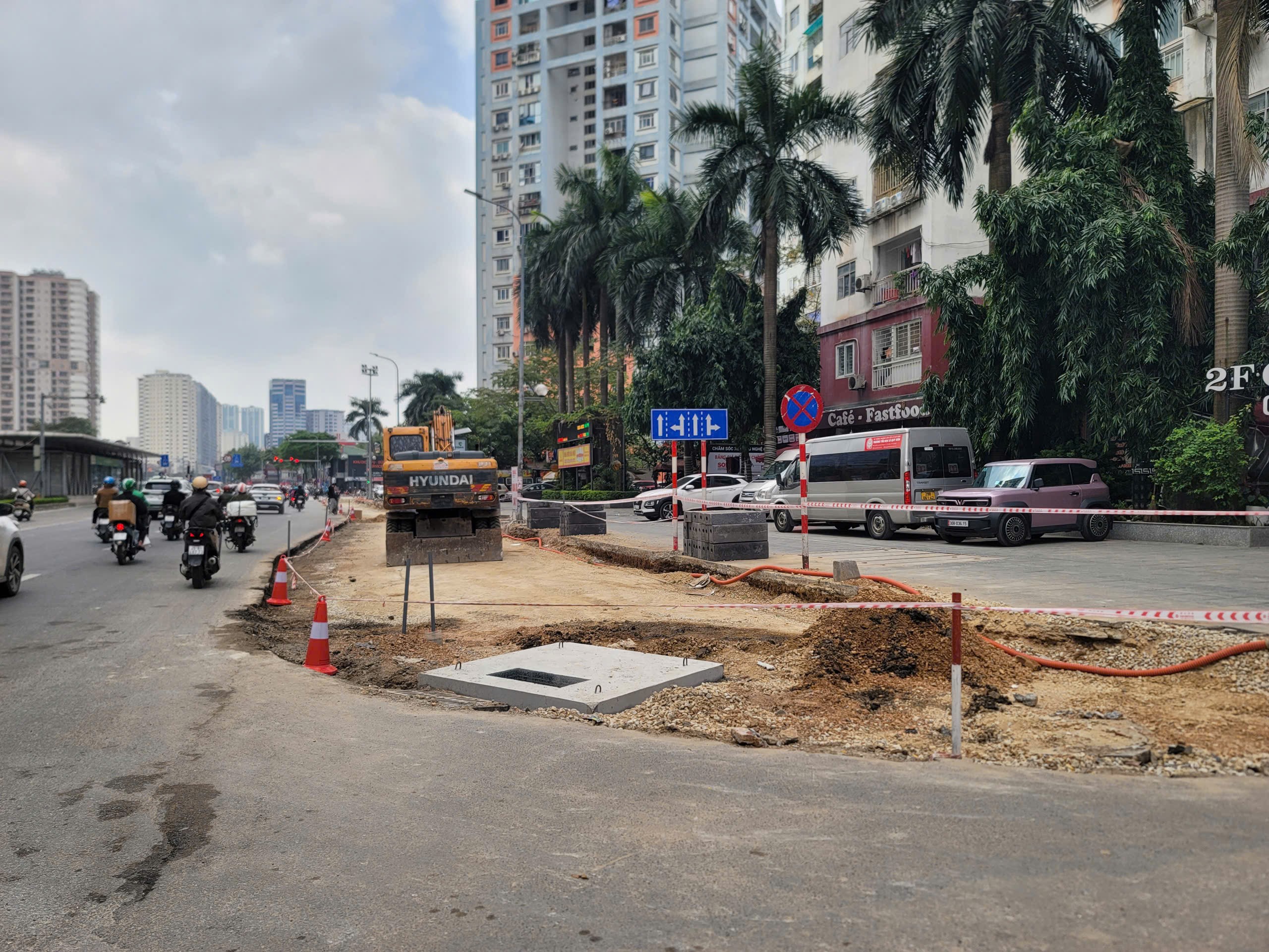 Vỉa hè tại ngã tư Lê Văn Lương- Hoàng Minh Giám được cắt để mở rộng lòng đường. Ảnh: QUỐC KHÁNH