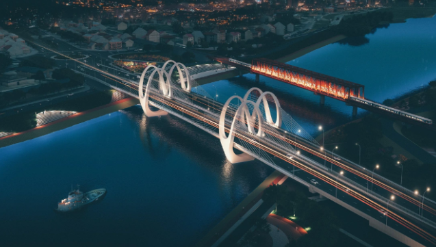 Phối cảnh cầu đường bộ và đường sắt vượt sông Đuống. Ảnh: Internet