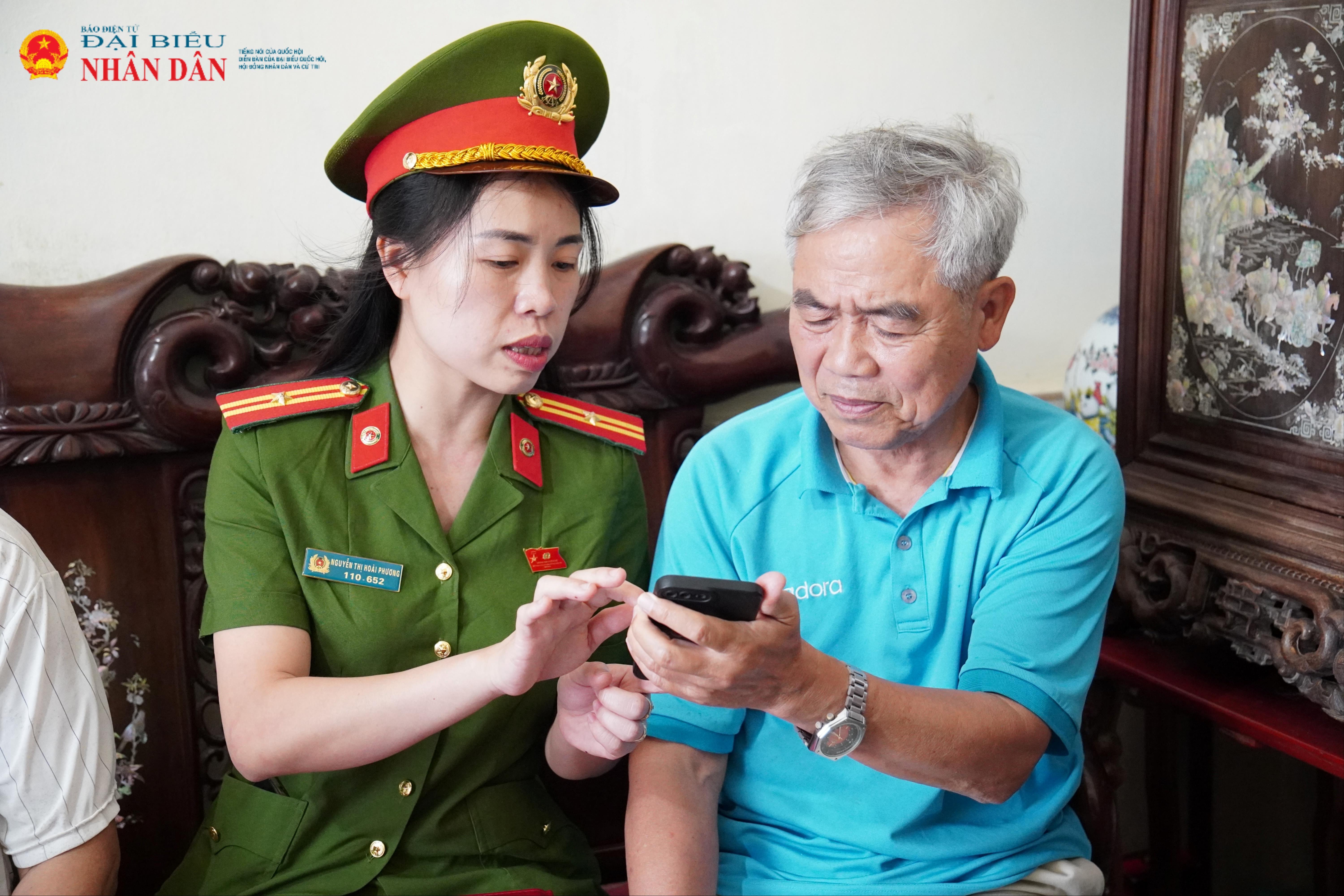 "Lúc đầu nghe nói đến định danh điện tử, iHanoi... tôi ngại lắm, mắt kém lại chẳng thạo máy móc nên cứ lảng tránh. Thế mà các cô Công an xã chẳng quản ngại, tối nào cũng ghé qua, kiên trì ngồi cùng tôi cả tiếng đồng hồ.