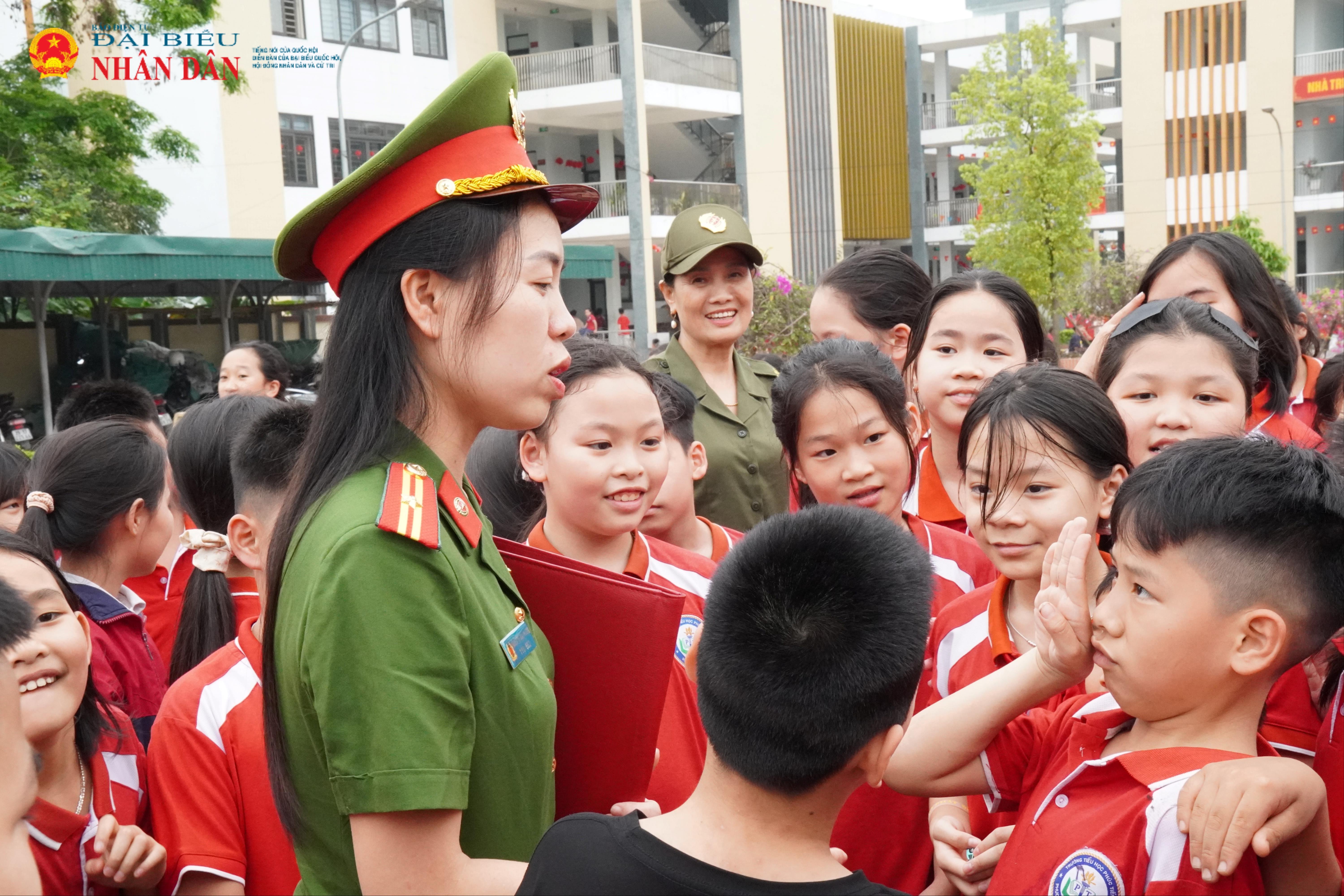 Các đồng chí Công an tới tận trường học trên địa bàn để hướng dẫn học sinh nhận diện và phòng chống tội phạm trên không gian mạng.