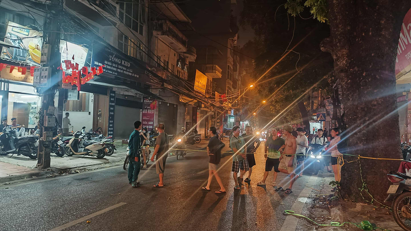 Người dân tập trung trên đường Đê La Thành. (Ảnh: Thanh Hà)