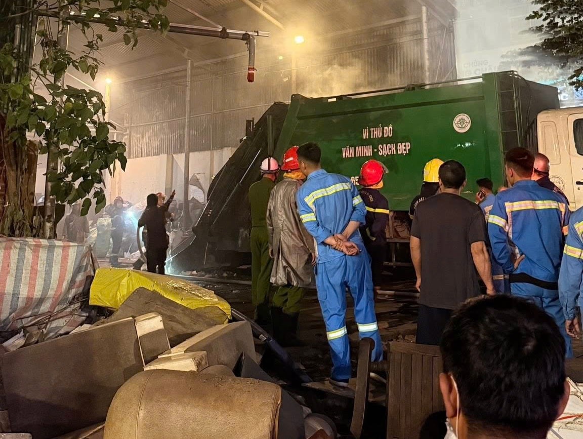 Vụ cháy tại điểm tập kết rác trên phố Hoàng Cầu (phường Ô Chợ Dừa). Ảnh: PC