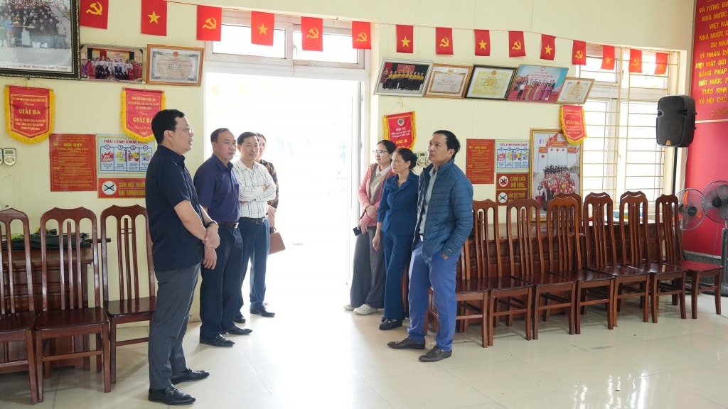 Khảo sát cơ sở vật chất tại các khu vực bỏ phiếu tại xã Dương Hòa. Ảnh: Phượng Nguyễn