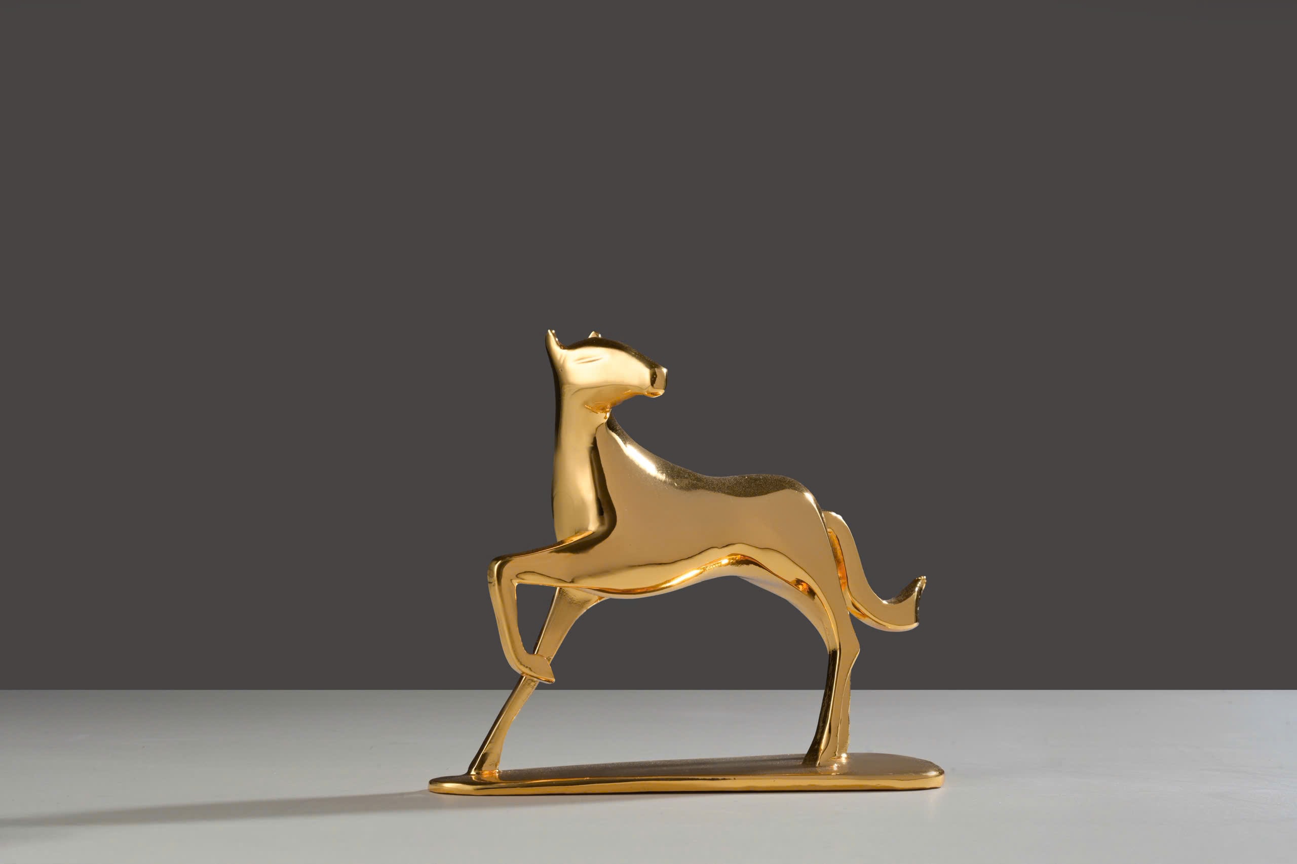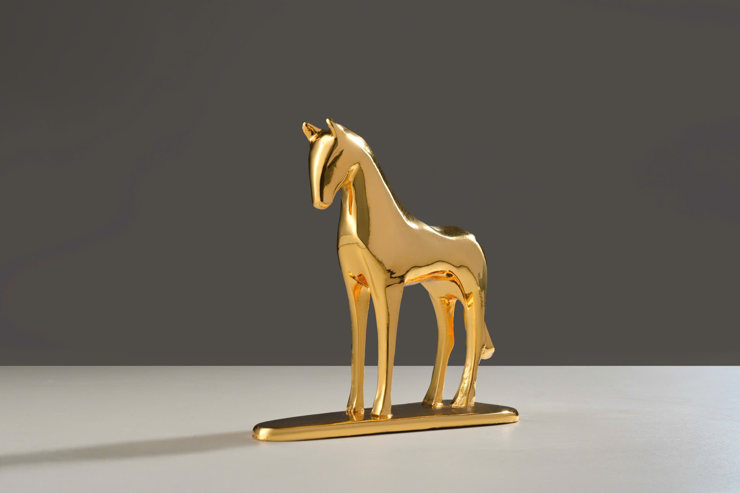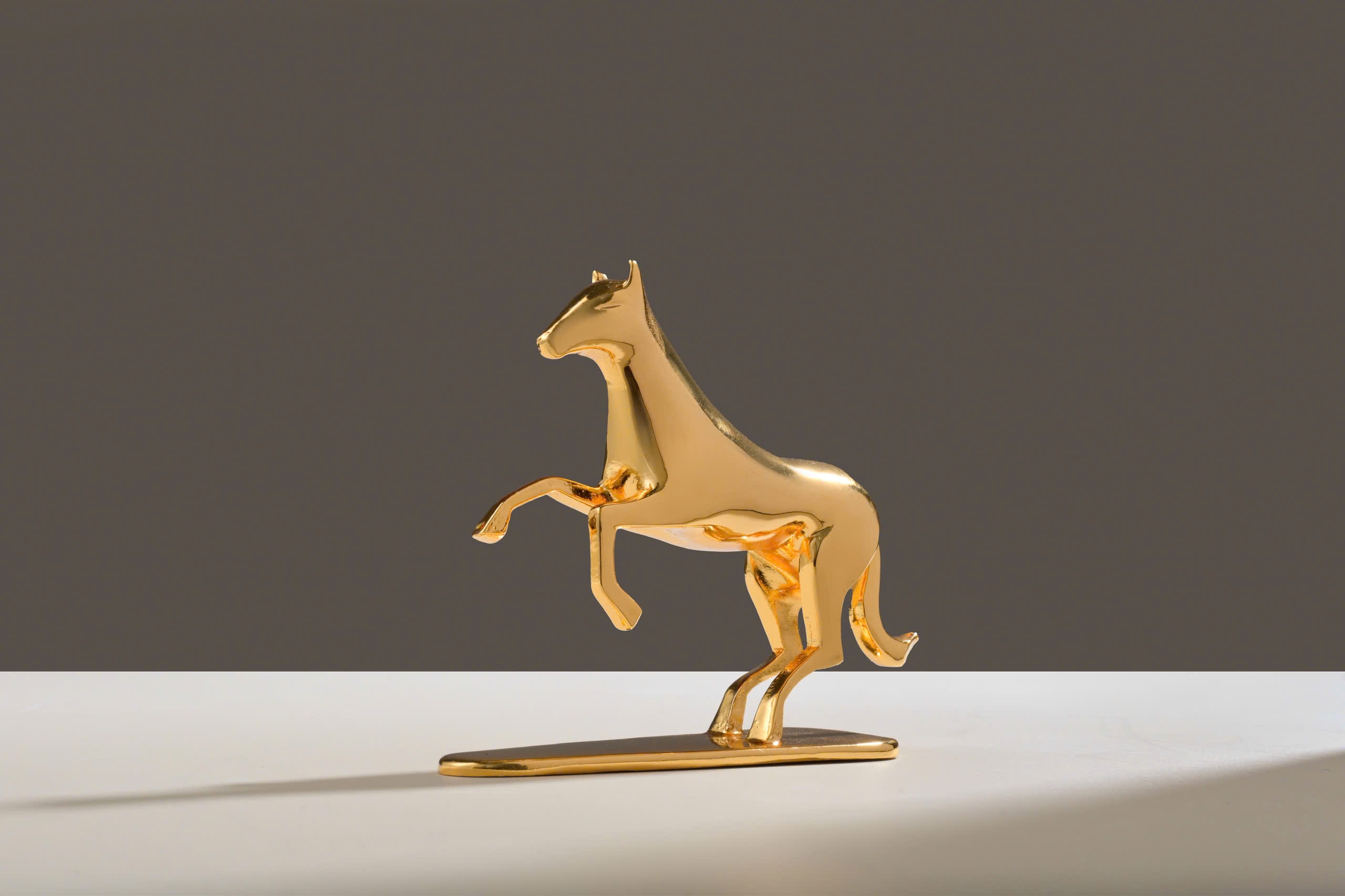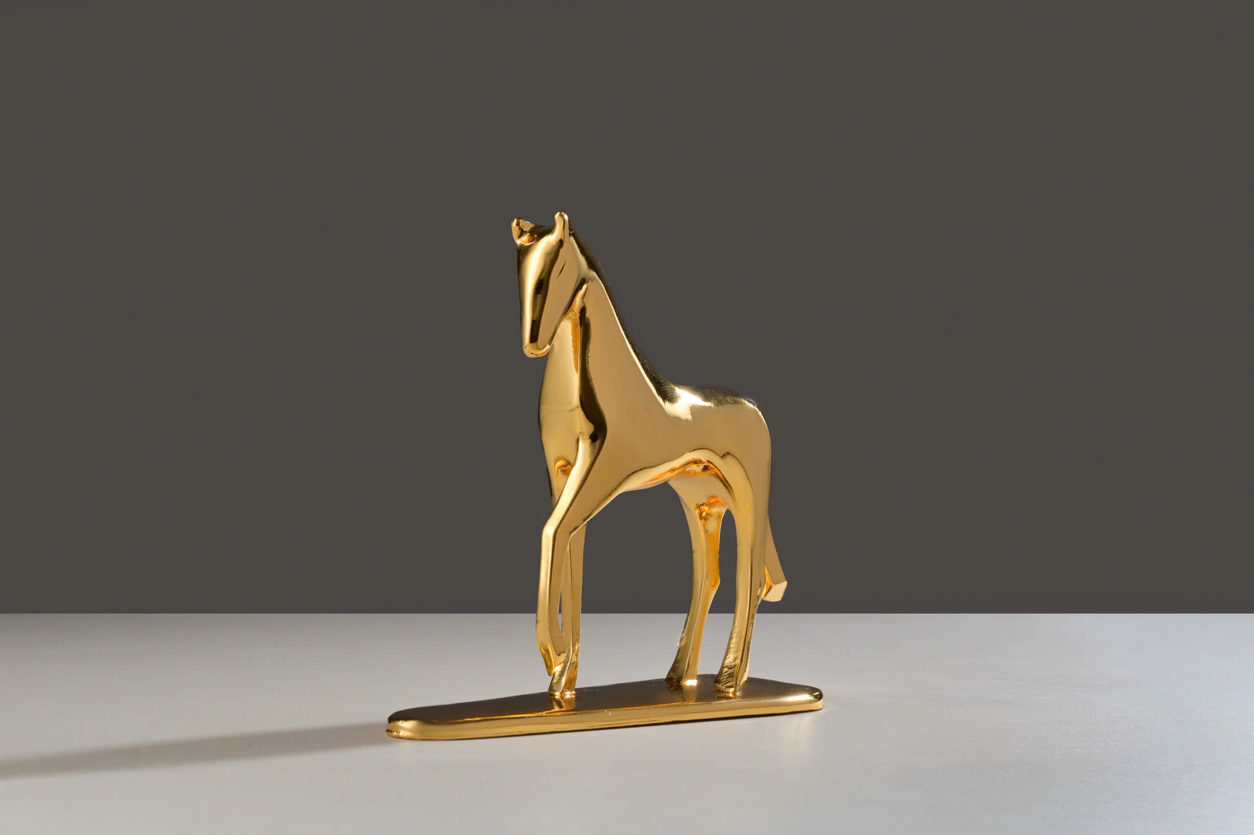 Trên từng khối hình, những đường nét điêu khắc mềm mại gợi chuyển động của gió, hoa văn mây nhẹ nâng bước chân ngựa, lớp mạ ánh kim phản chiếu ánh xuân ấm áp. Không quá rực rỡ, nhưng đủ sâu để gợi cảm giác thư thái và an nhiên khi ngắm nhìn.