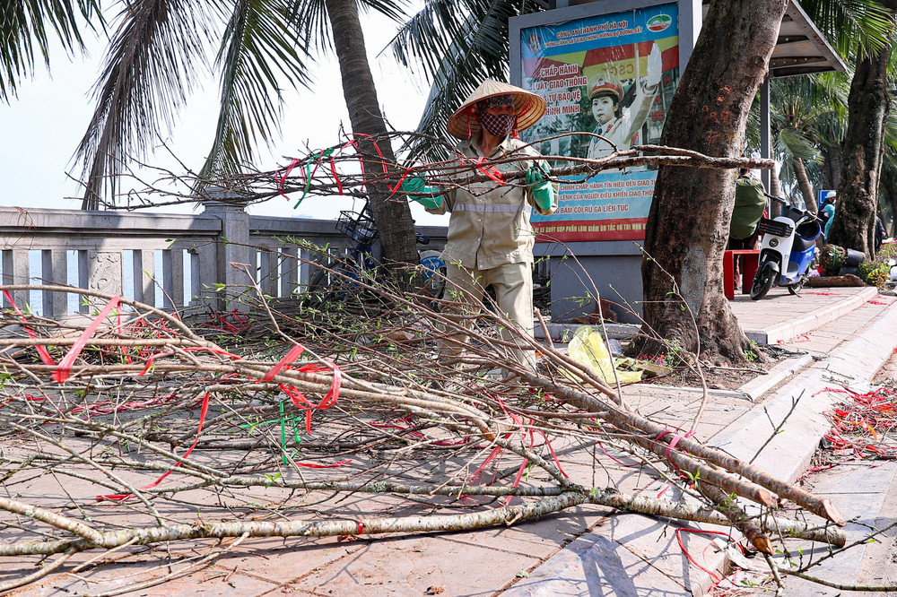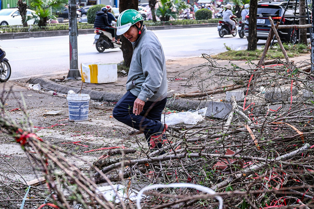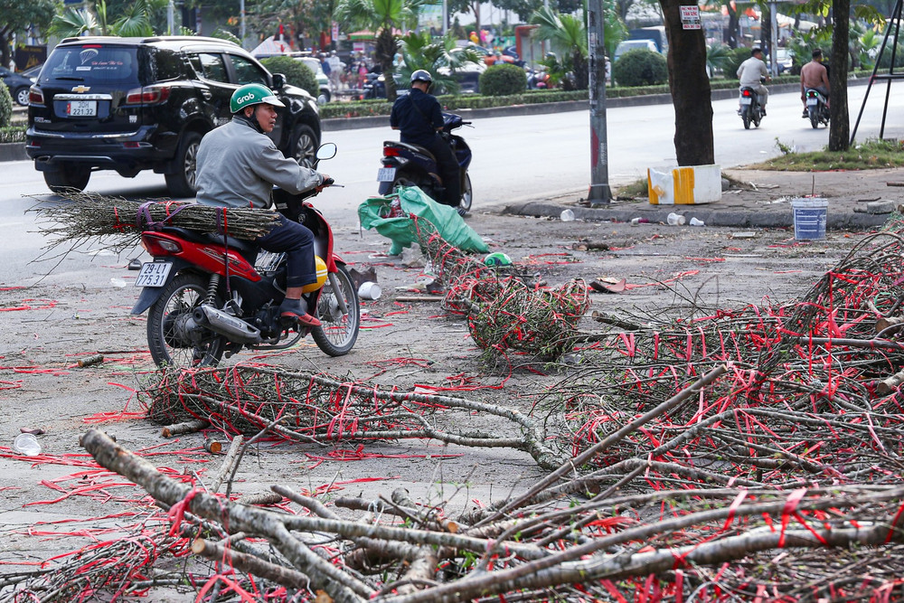 Trên đường Tố Hữu, cảnh đào vứt la liệt tràn xuống cả lòng đường. Cảnh tượng ngổn ngang này không chỉ gây mất mỹ quan đô thị mà còn cản trở giao thông.