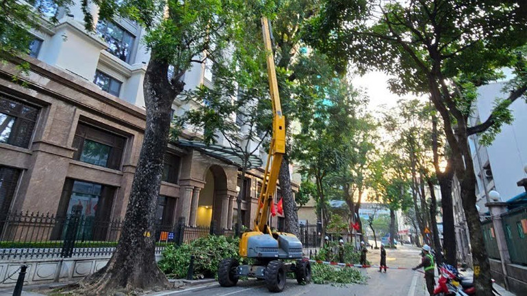 Công ty Công viên Cây xanh Hà Nội chủ động cắt tỉa cây trước khi bão đến.