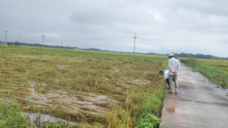 Nhiều diện tích lúa bị gãy đổ, ngập úng.