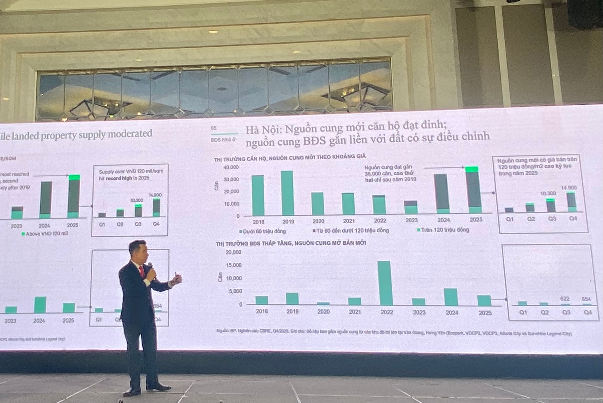 Đại diện CBRE cung cấp thông tin về nguồn cung căn hộ mới tại Hà Nội trong quý 4-2025. Ảnh: T.H