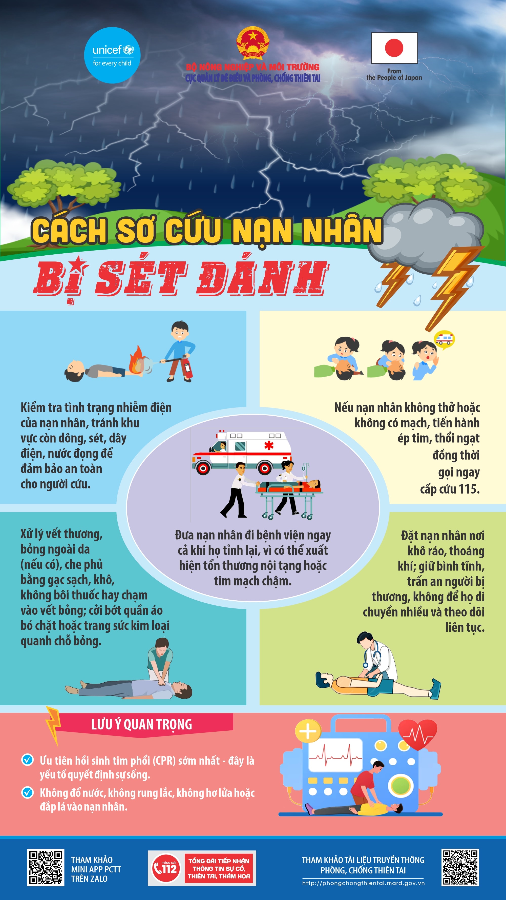 Cách sơ cứu nạn nhân bị sét đánh. Nguồn: Cục Quản lý đê điều và Phòng, chống thiên tai