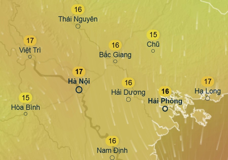 Trong mấy ngày như trên, nhiệt độ cảm nhận buổi sáng sớm ở Hà Nội dự báo sẽ xuống dưới 20oC. Riêng sáng sớm 4/11, nhiệt độ Hà Nội có thể xuống đến mức 17oC, là mức rét, và nếu vậy thì đó sẽ là lần đầu tiên có mức nhiệt độ 17oC ở Hà Nội trong mùa Thu - Đông 2025.