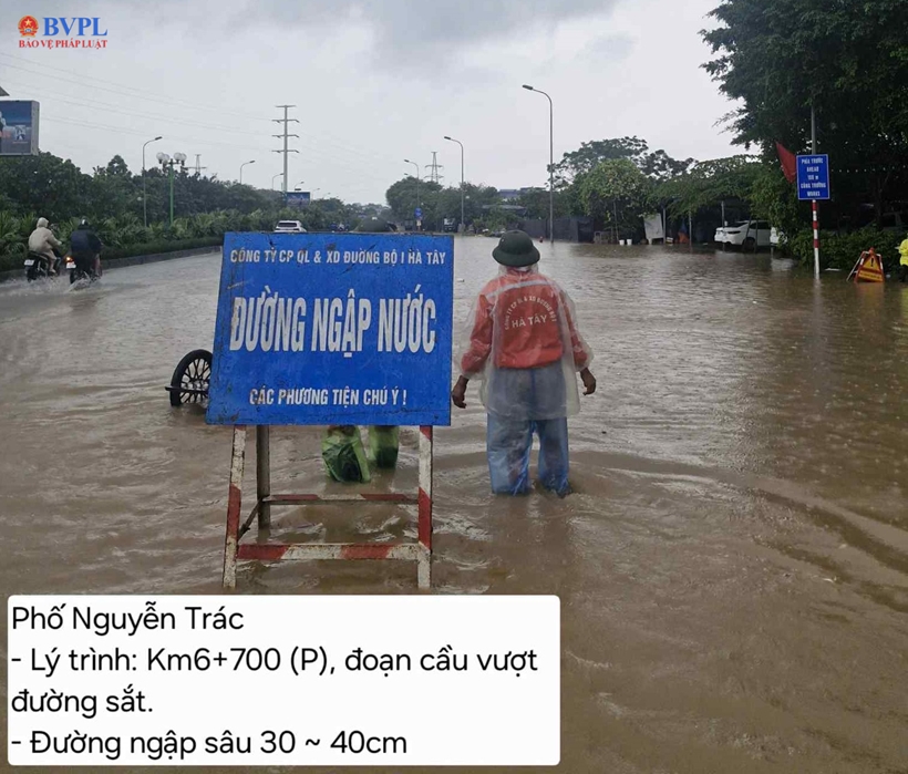 Trước tình trạng ngập lụt kéo dài, các lực lượng thuộc Sở Xây dựng Hà Nội, nhất là Ban Duy tu các công trình hạ tầng giao thông, nhà thầu quản lý đường bộ... đã được điều động để ứng trực, hướng dẫn phân luồng giao thông, đặt biển báo cảnh báo tại các vị trí ngập sâu.
