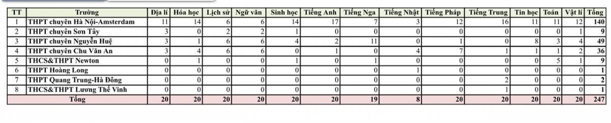 Tham dự kỳ thi, Hà Nội thành lập 13 đội tuyển với tổng số 247 học sinh, thi ở các môn: Toán, Vật lý, Hóa học, Sinh học, Tin học, Ngữ văn, Lịch sử, Địa lý, Tiếng Anh, Tiếng Pháp, Tiếng Nga, Tiếng Trung và Tiếng Nhật.