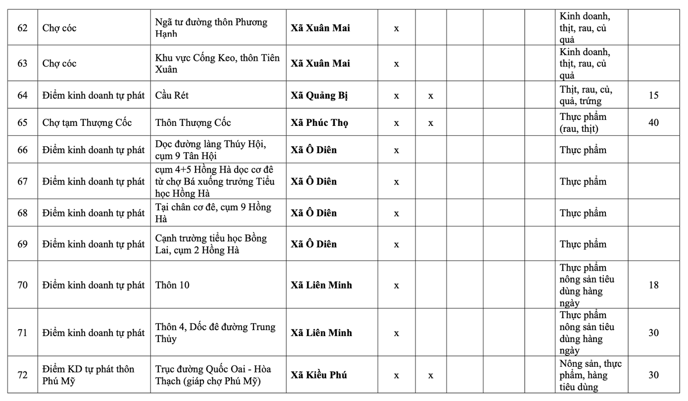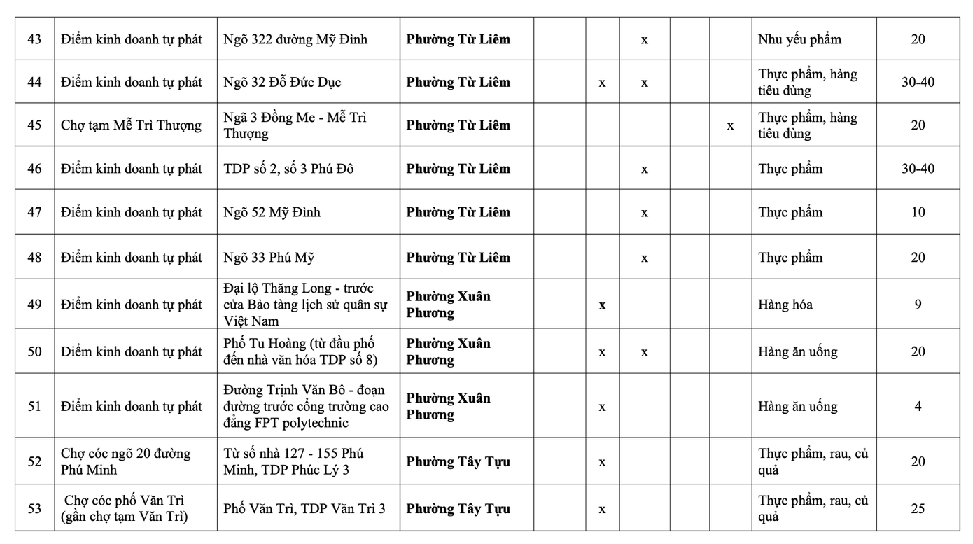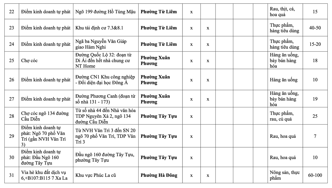 Danh sách chợ cóc, điểm kinh doanh tự phát trên địa bàn Hà Nội phải giải tỏa theo nhóm: