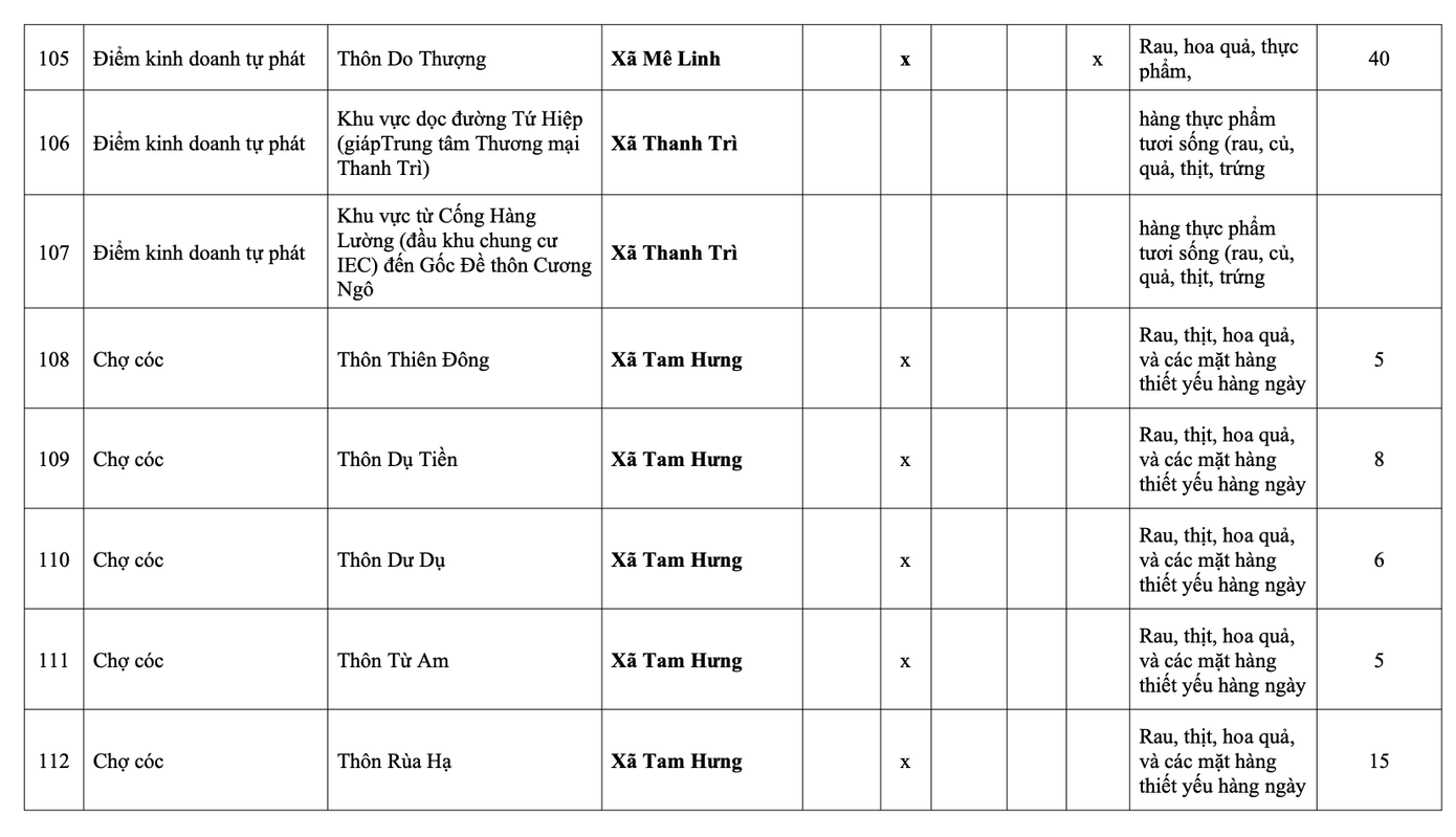 Nhóm 4 là các chợ cóc tồn tại lâu năm, quy mô trên 100 hộ, có tính chất phức tạp, sẽ được giải tỏa trước ngày 30/6/2027. Tổng cộng, Hà Nội hiện có 231 chợ cóc, điểm kinh doanh tự phát nằm trong diện xử lý theo lộ trình này.