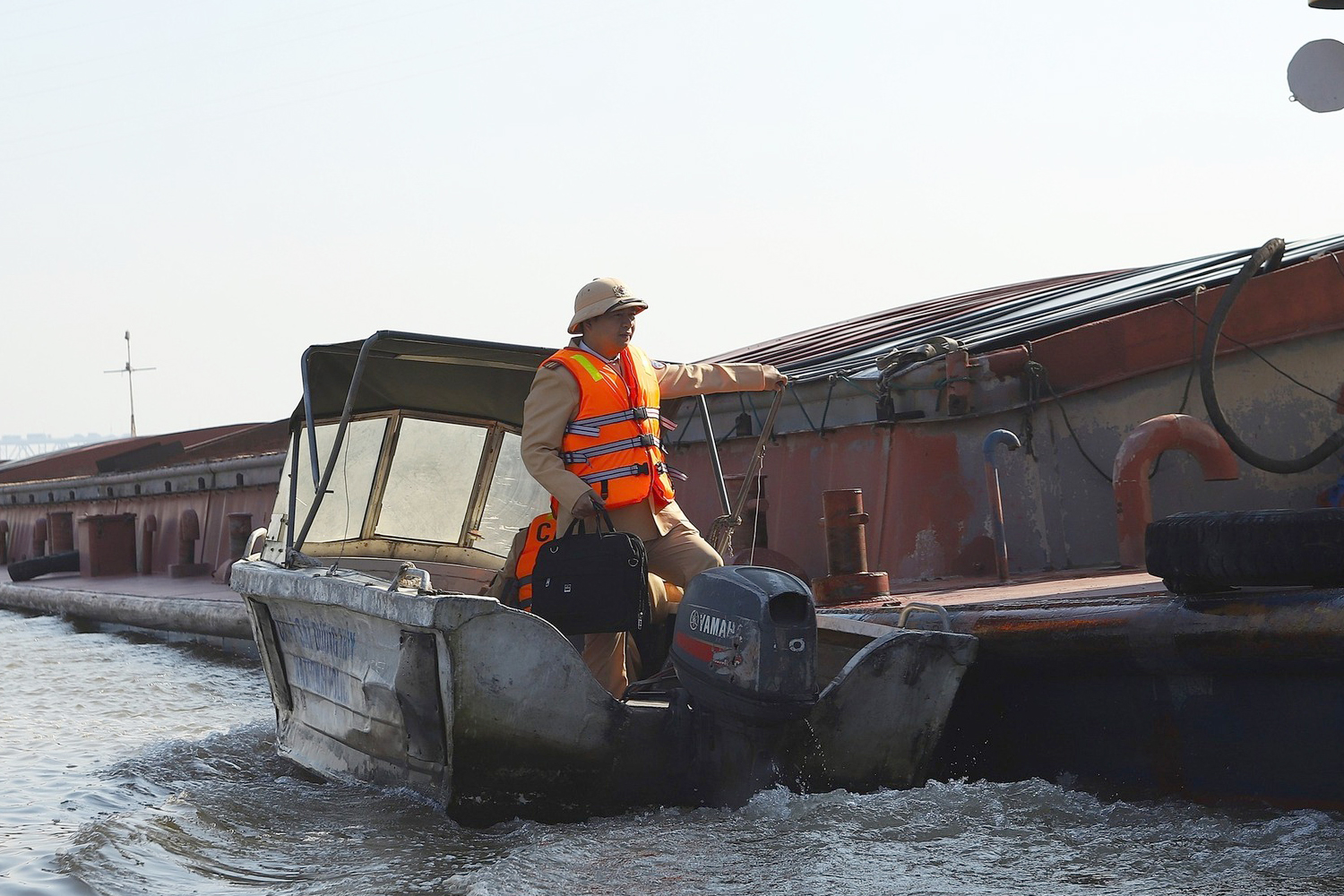 Với các phương tiện có dấu hiệu vi phạm lưu thông qua khu vực, CSGT đường thủy sẽ trực tiếp áp sát ra hiệu để người lái và chủ tàu thuyền đảm bảo an toàn trước khi làm việc với cơ quan chức năng.
