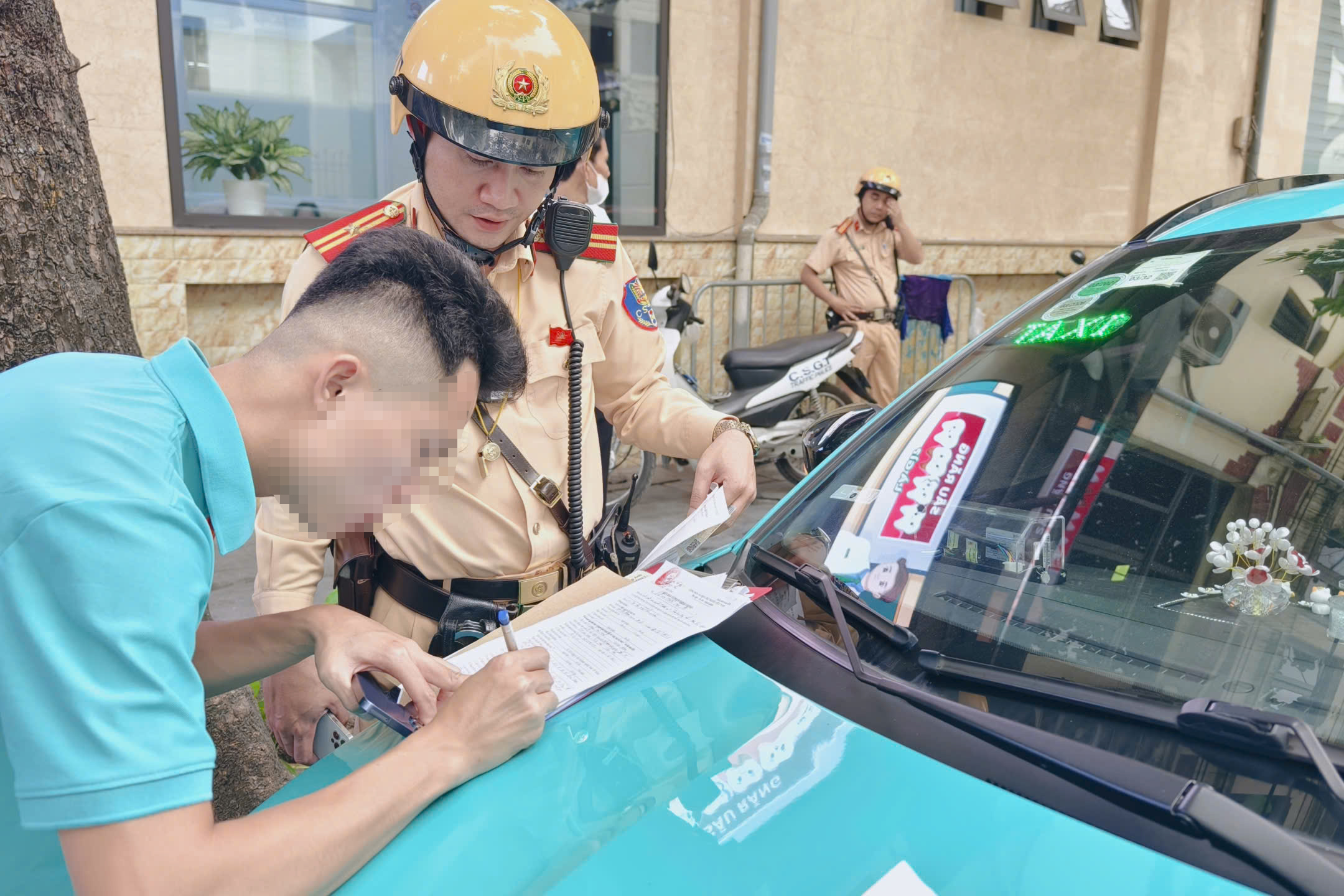 Còn tại khu vực trước cổng một số bệnh viện ở Tràng Thi, cảnh sát tuần tra cũng xử lý một số tài xế taxi đang dừng, đỗ chờ đón khách bất chấp biển cấm.