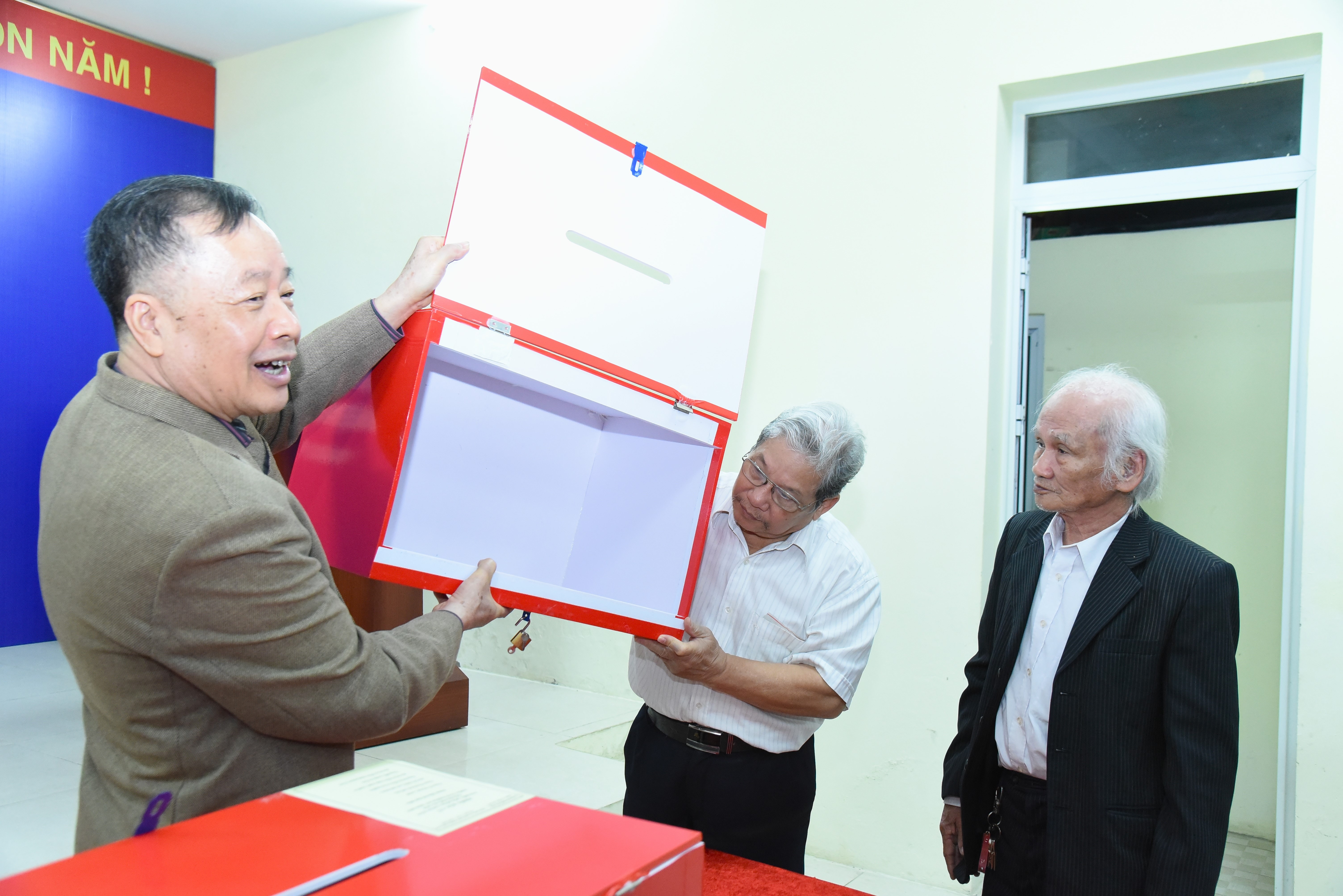 Tổ bầu cử tiến hành kiểm tra hòm phiếu. Ảnh: Xuân Quý