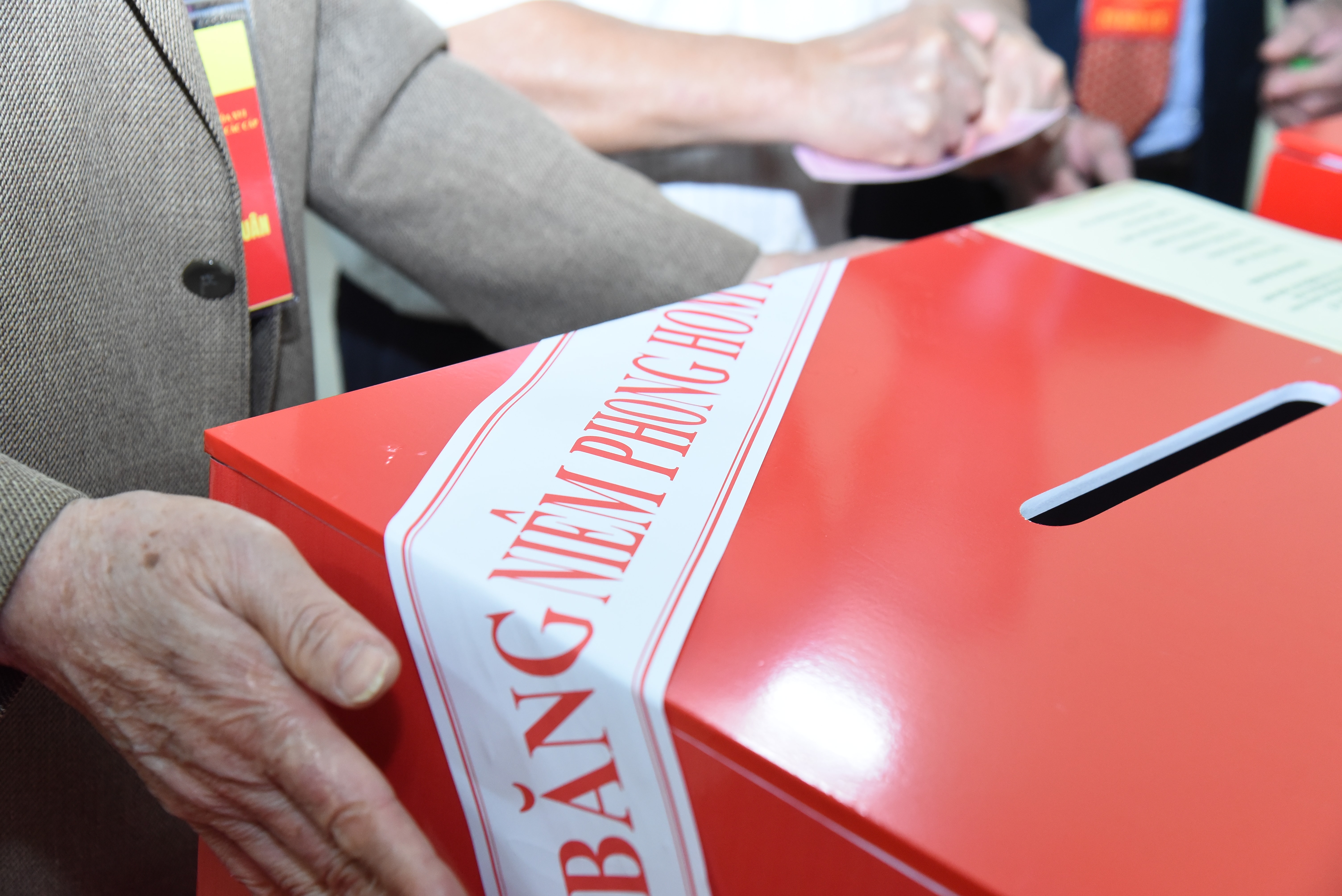Tổ bầu cử tiến hành niêm phong Hòm phiếu. Ảnh: Xuân Quý