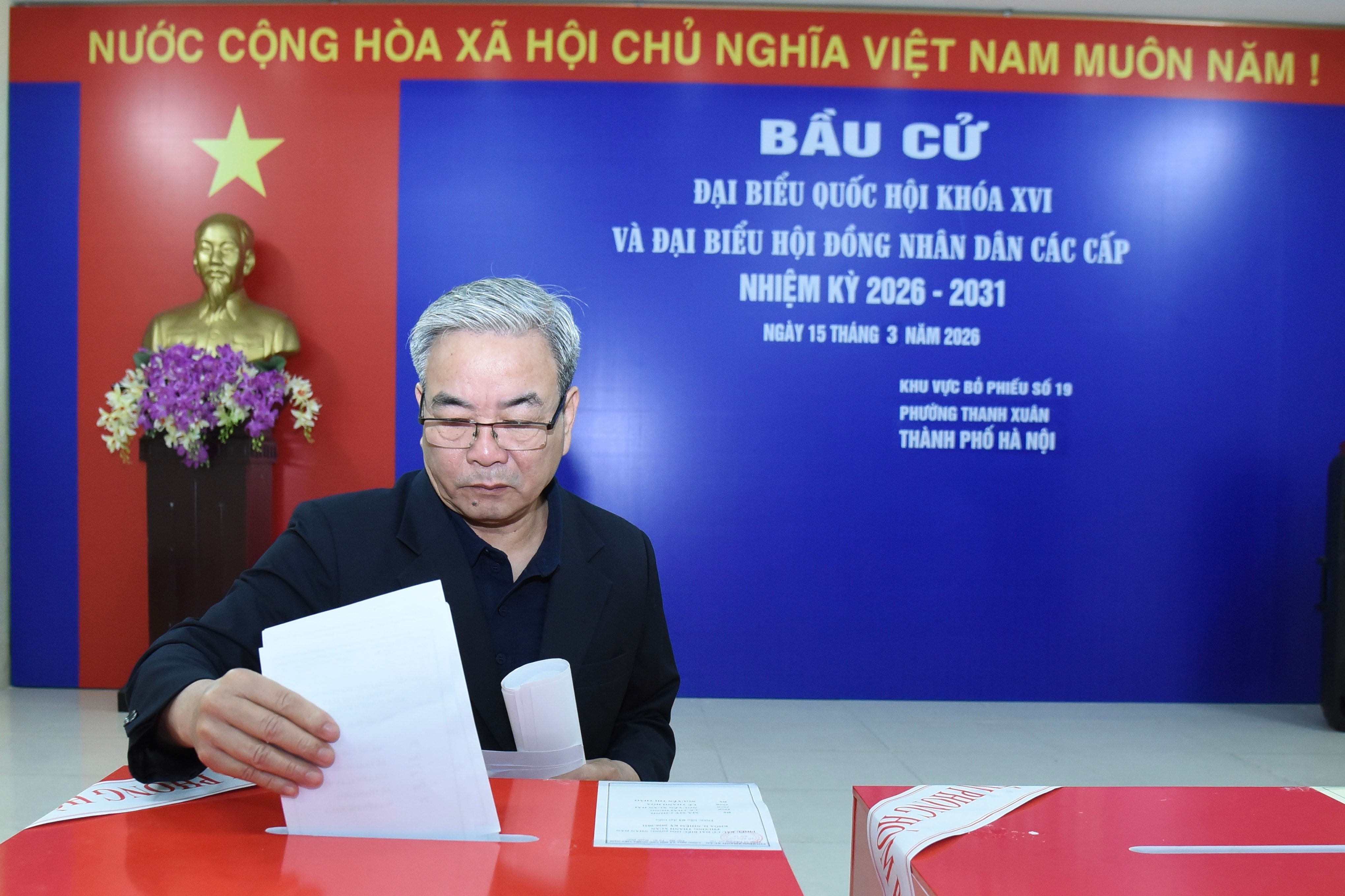Khu vực bỏ phiếu số 19, phường Thanh Xuân, Hà Nội tập trung 3.202 cử tri là cư dân của 4 tổ dân phố, gồm 1.445 cử tri nam, 1.747 cử tri nữ.