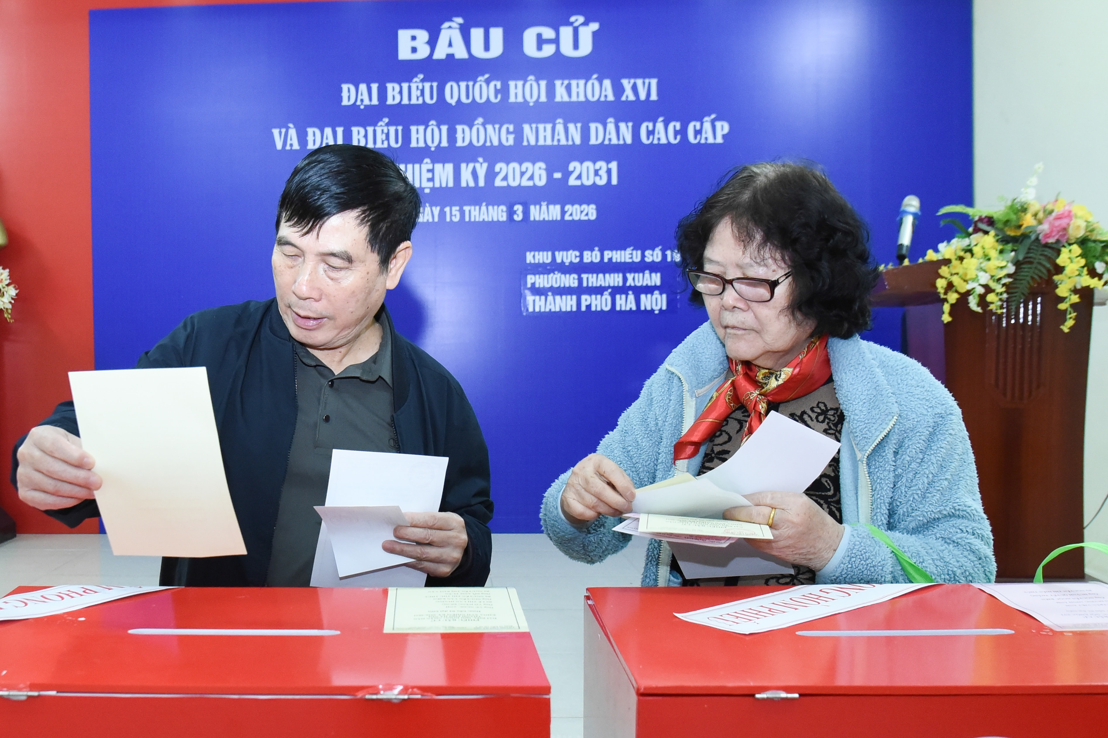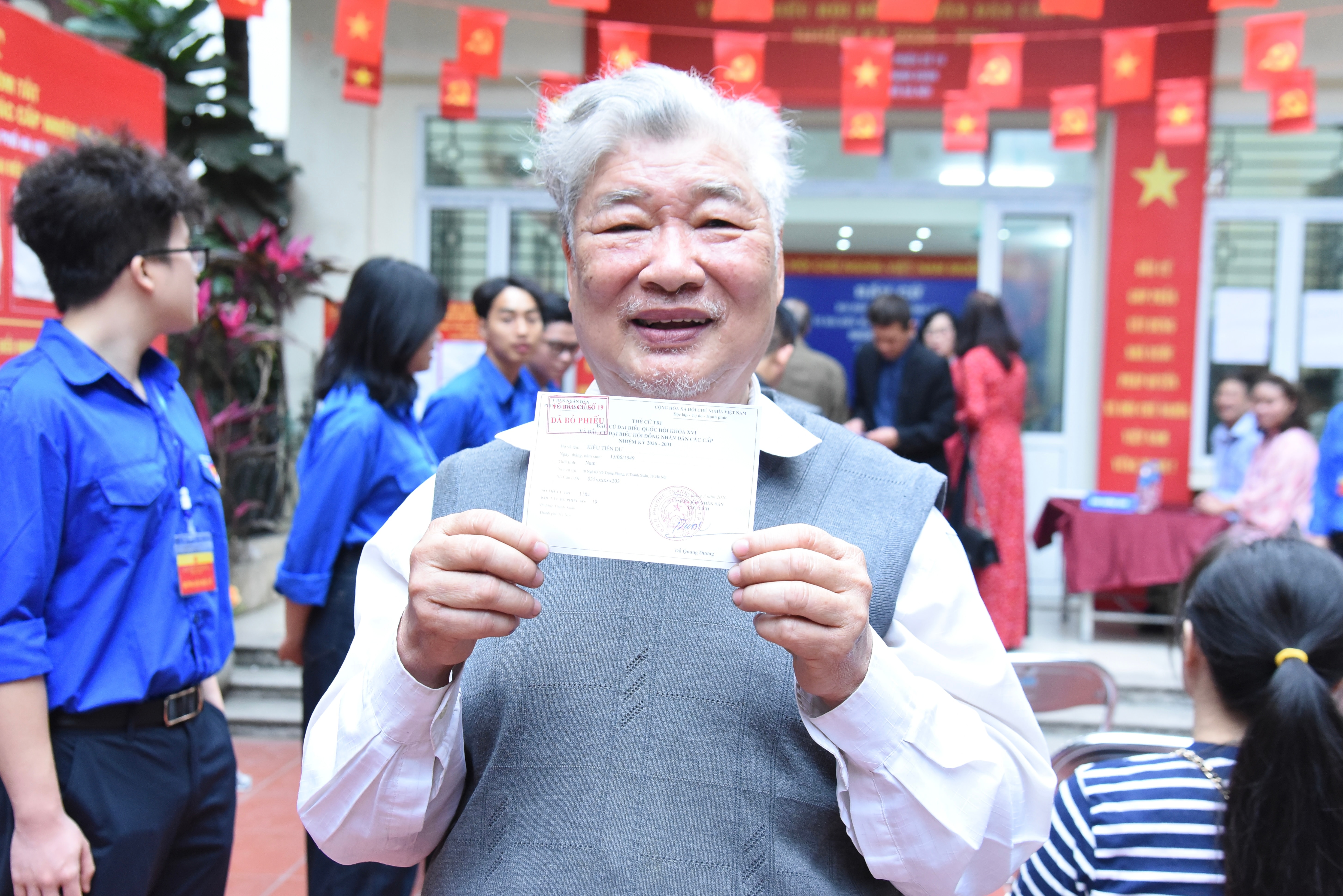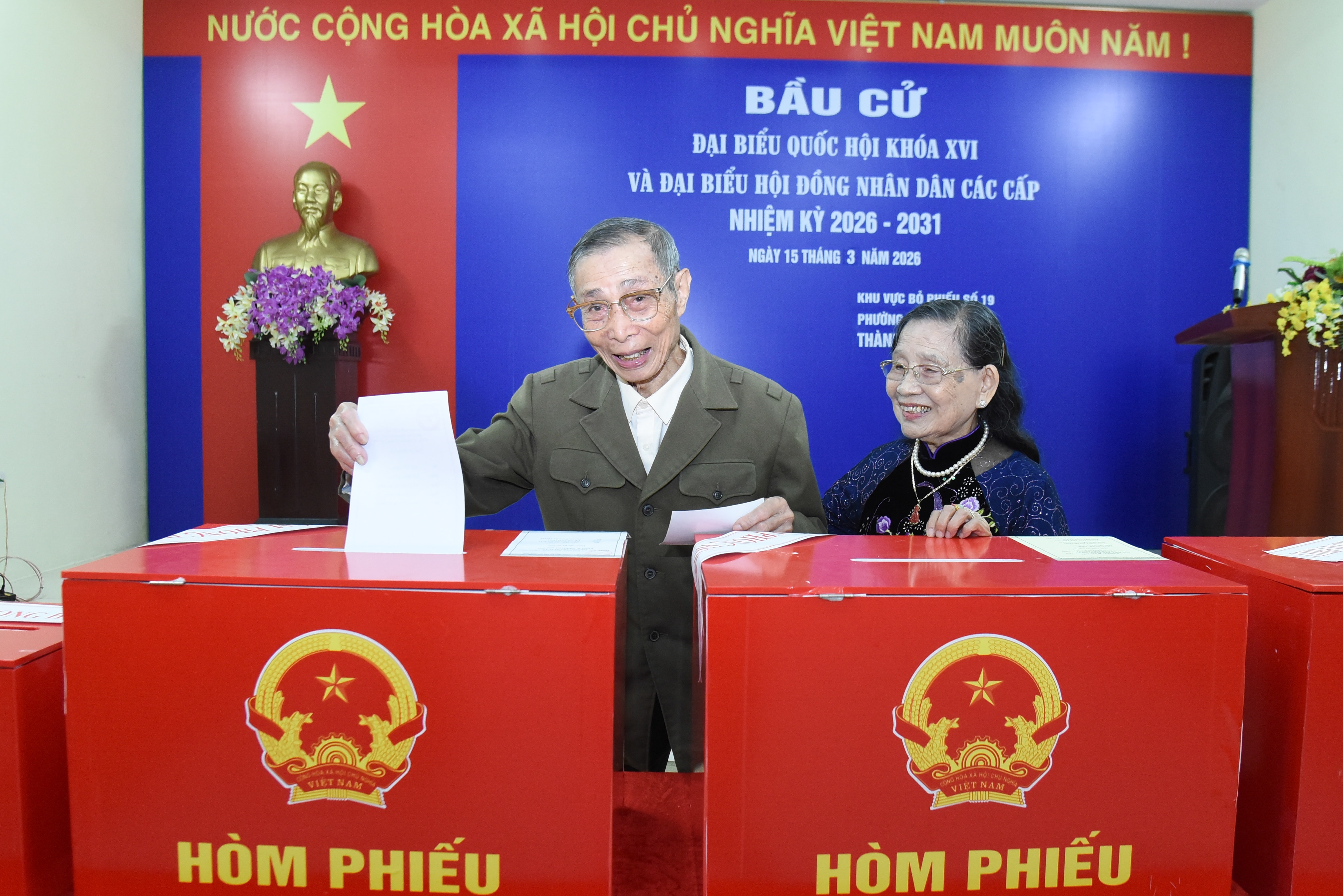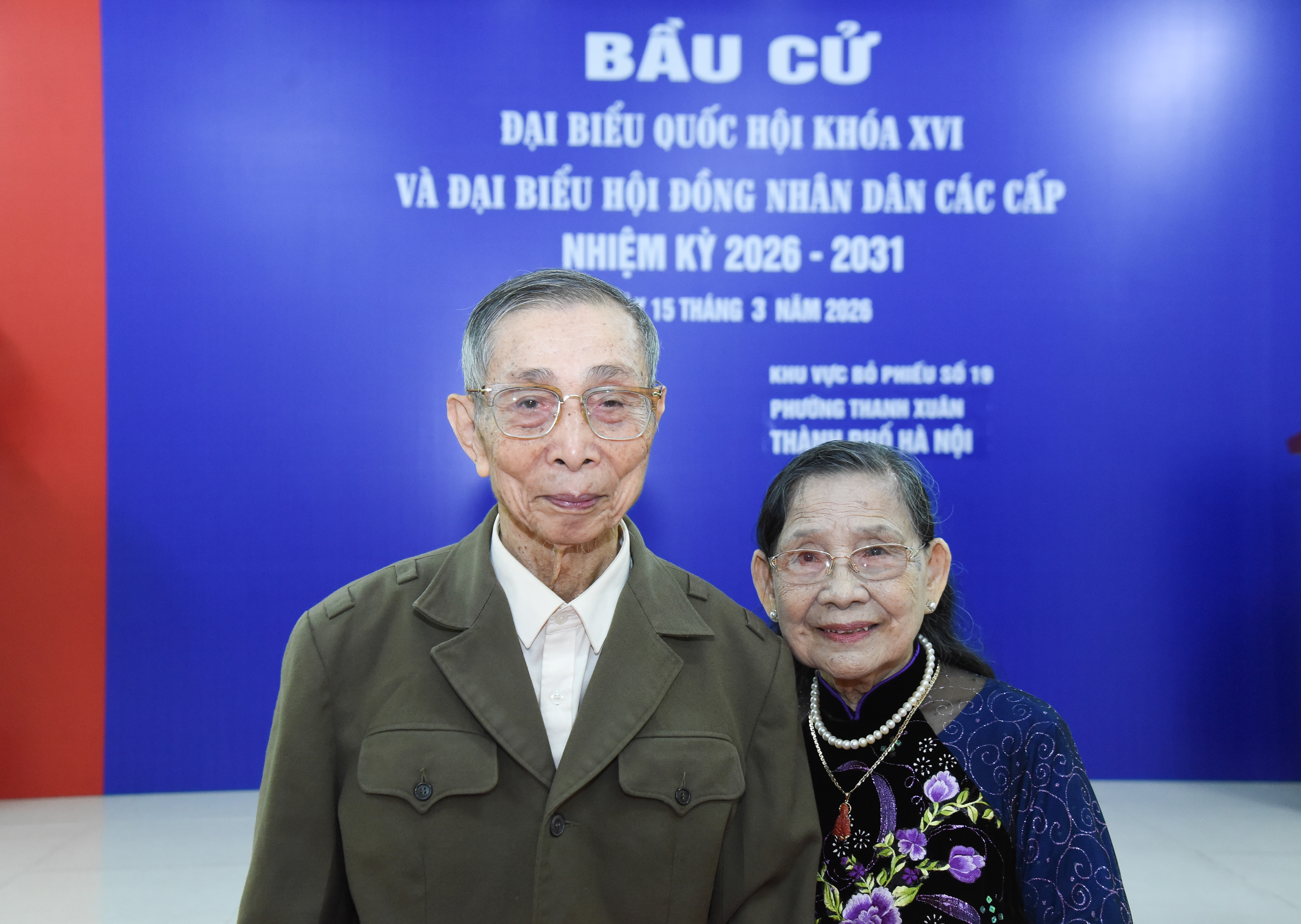 Cụ ông Nguyễn Công Ngô (93 tuổi), cùng vợ là cụ bà Nguyễn Thị Thoa (93 tuổi) đã đến điểm bỏ phiếu từ rất sớm. Cụ Ngô cho biết rất vinh dự, tự hào và phấn khởi khi được thực hiện quyền bầu cử, để lựa chọn những đại biểu xứng đáng đại diện cho tiếng nói và nguyện vọng của nhân dân và làm tròn nhiệm vụ mà Đảng, Nhà nước giao phó.