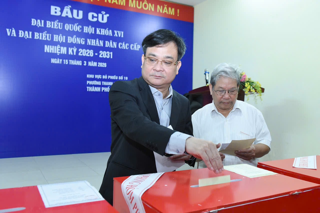 Phó Bí thư Đảng ủy Quốc hội, Phó Bí thư Đảng ủy các cơ quan tham mưu, giúp việc của Đảng ủy Quốc hội Phùng Khánh Tài thực hiện quyền bầu cử tại Khu vực bỏ phiếu số 19. Ảnh: Xuân Quý
