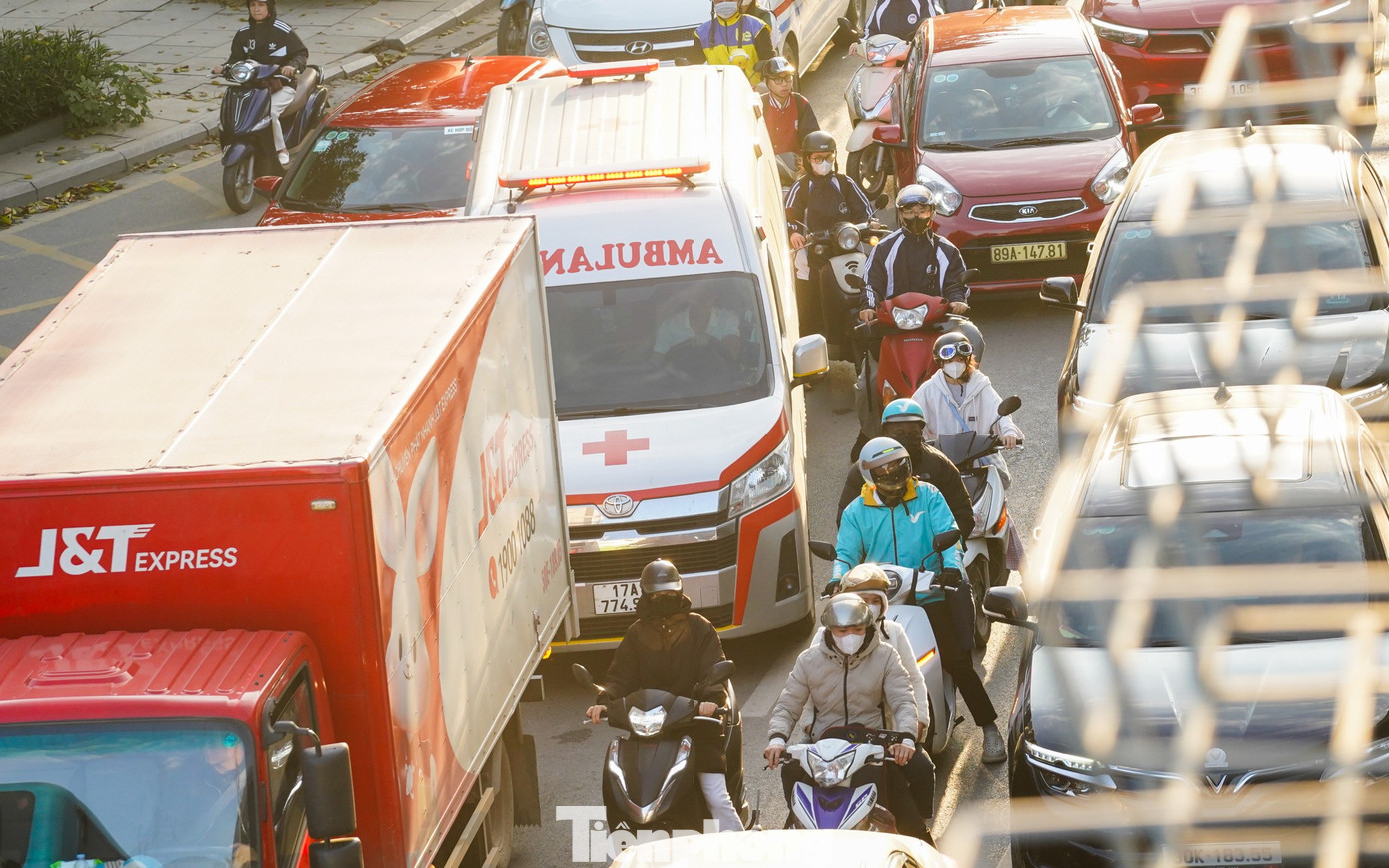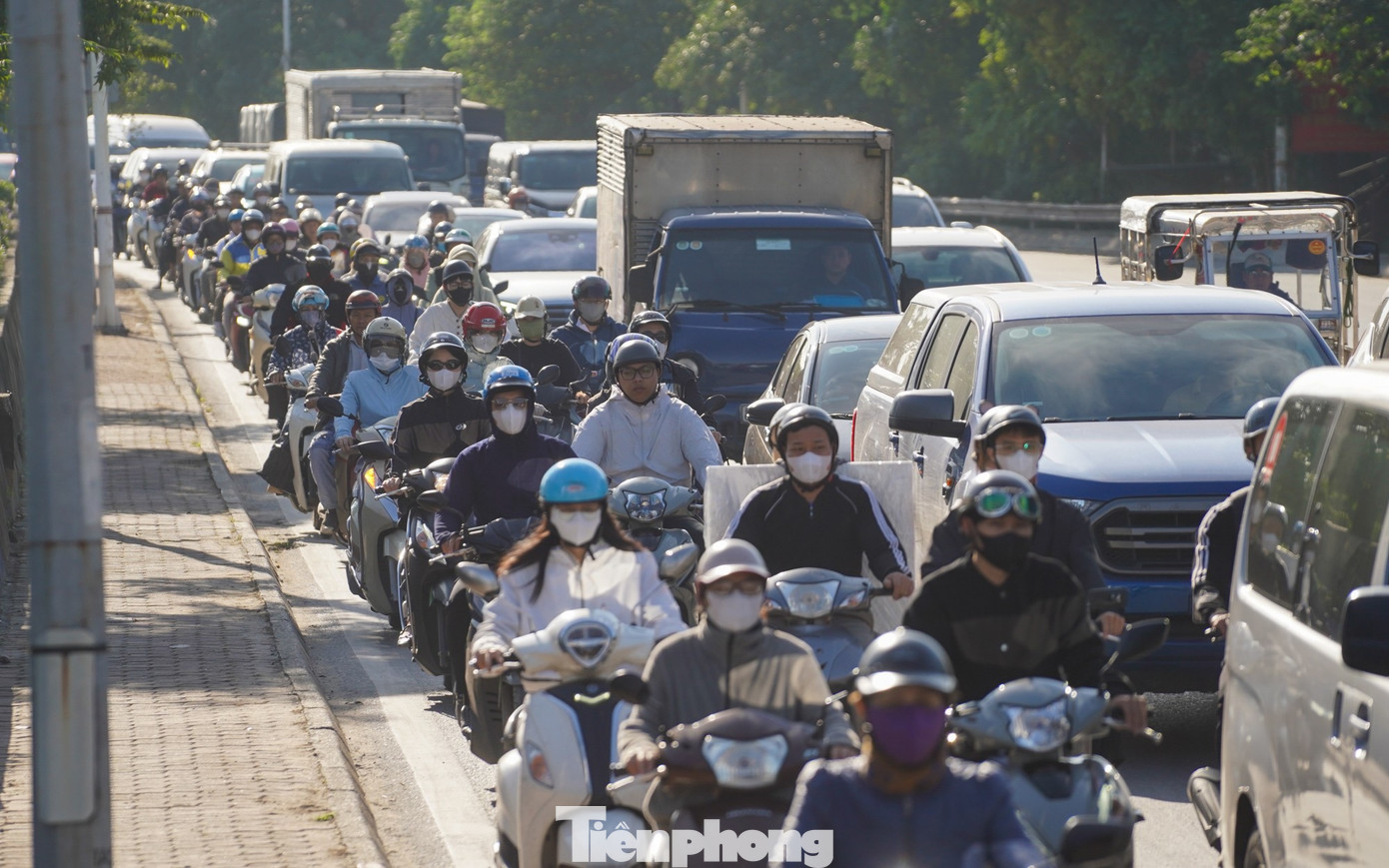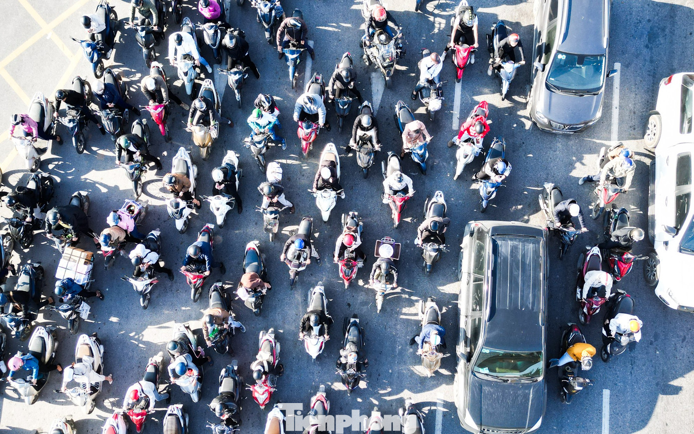 Phương tiện nối đuôi nhau chật như nêm, có thời điểm gần như không thể di chuyển, nhiều người đi xe máy buộc phải leo lên vỉa hè để tìm lối thoát.