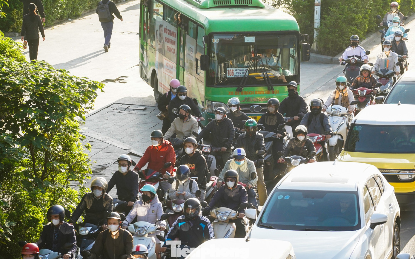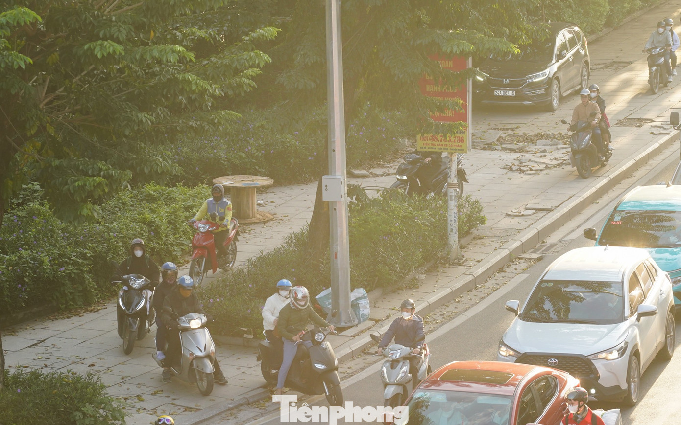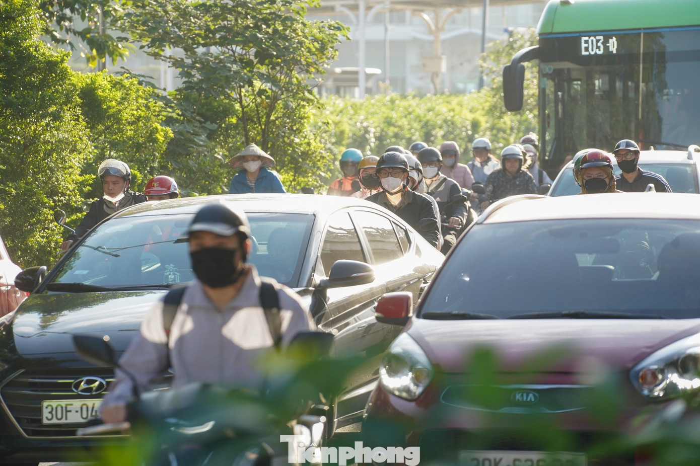 Phương tiện nối đuôi nhau chật như nêm, có thời điểm gần như không thể di chuyển, nhiều người đi xe máy buộc phải leo lên vỉa hè để tìm lối thoát.