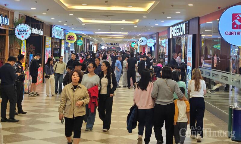 Dòng người đổ về các trung tâm thương mại lớn tại Hà Nội để mua sắm nhộn nhịp hơn thường ngày.