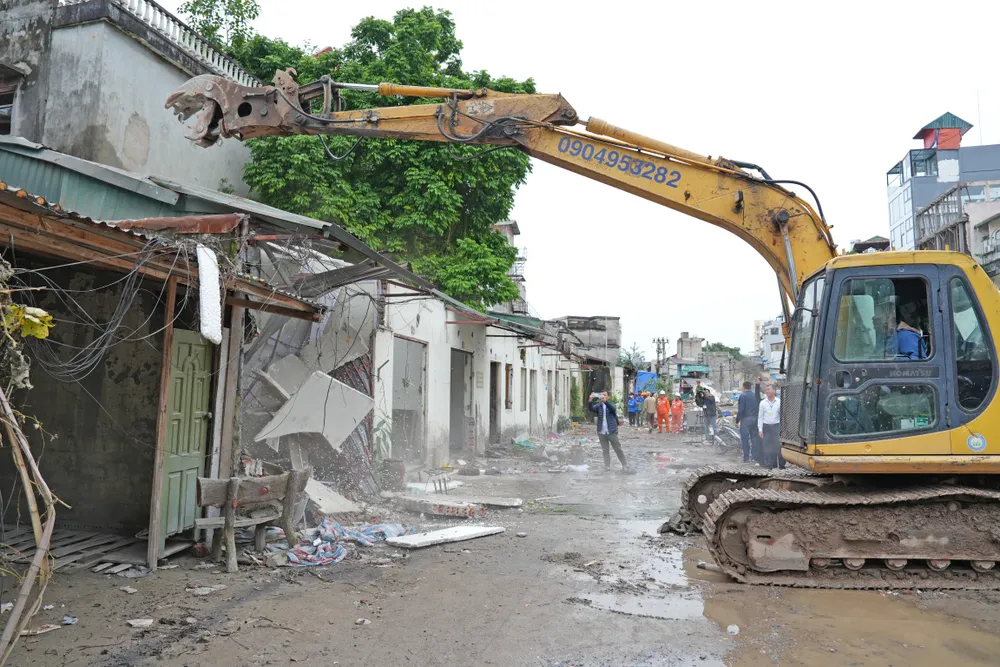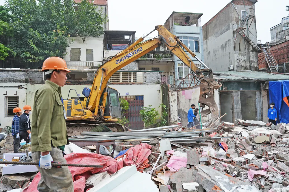 Máy xúc tiến hành phá dỡ công trình số 48A, ngõ 371 La Thành. Ảnh: TRỌNG PHÚ