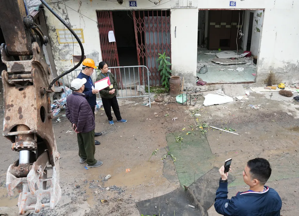 Hai trường hợp bị cưỡng chế gồm số nhà 48 A, ngõ 371 La Thành, do ông N.H.L sử dụng và số nhà 20A, cùng khu, do ông Đ.V.T sử dụng.