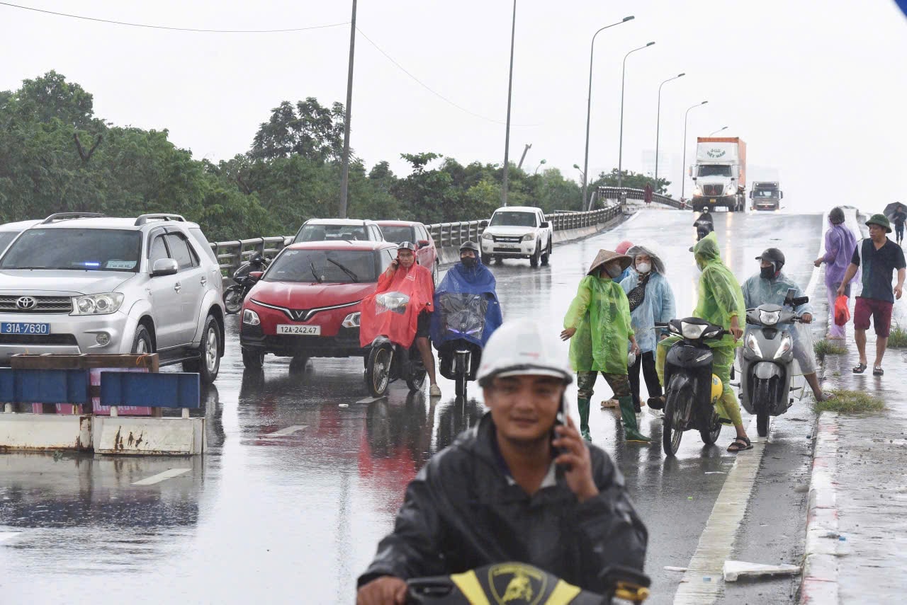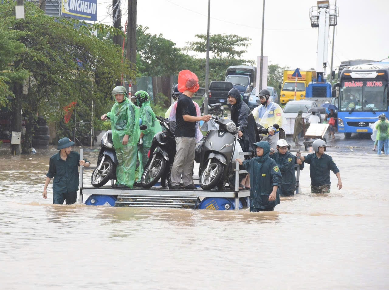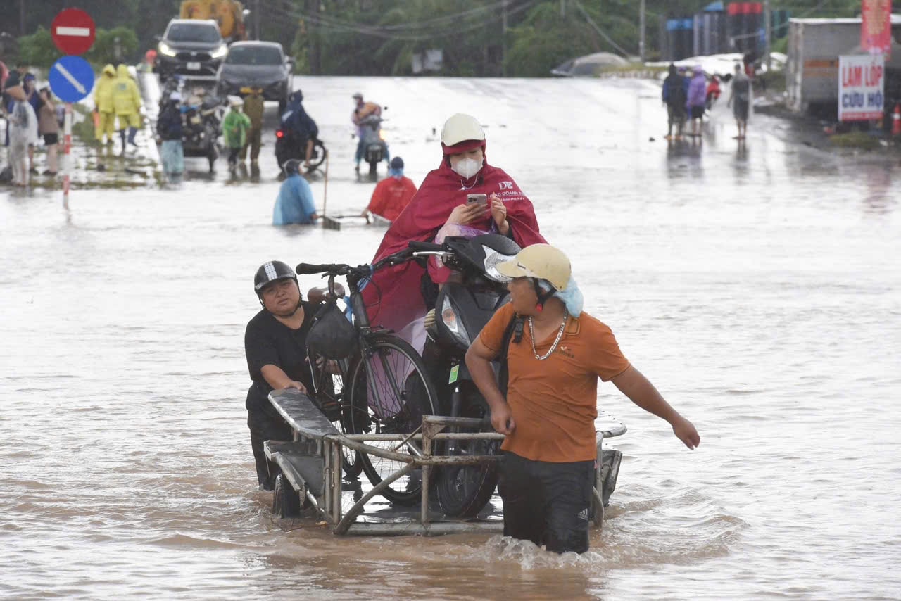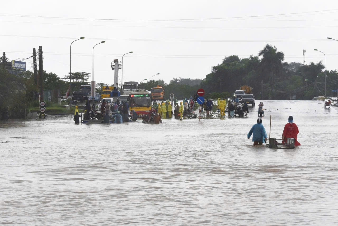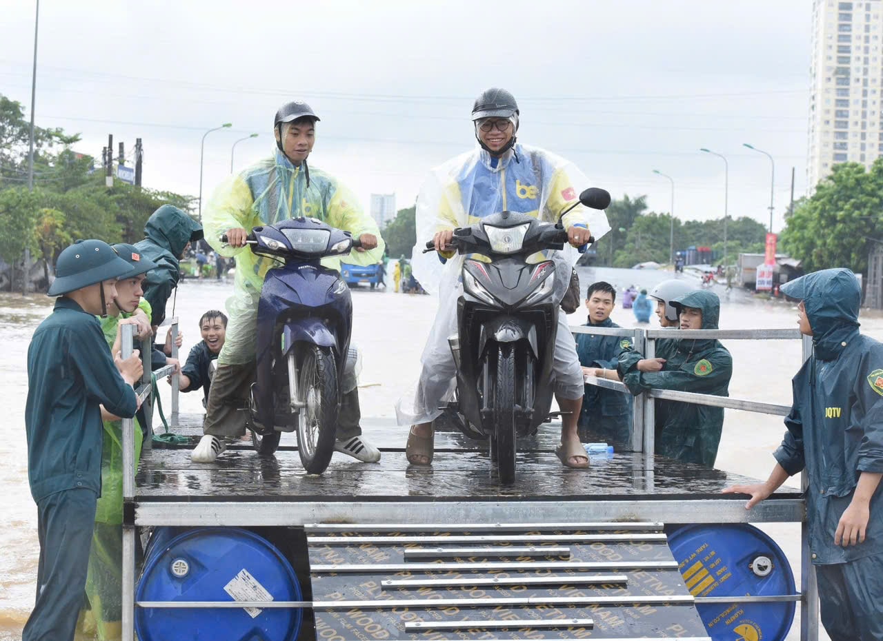 Trong khi đó, trên đoạn Quốc lộ 70 hướng lên cầu vượt Tây Mỗ, nước ngập sâu tới gần ngang bụng người lớn. Tình trạng này đã khiến hàng trăm phương tiện bị kẹt cứng, không thể di chuyển. Trước tình hình đó, Đội Dân quân tự vệ phường Xuân Phương cùng phương tiện cơ động đã hỗ trợ, vận chuyển phương tiện, đưa người dân qua điểm ngập lụt