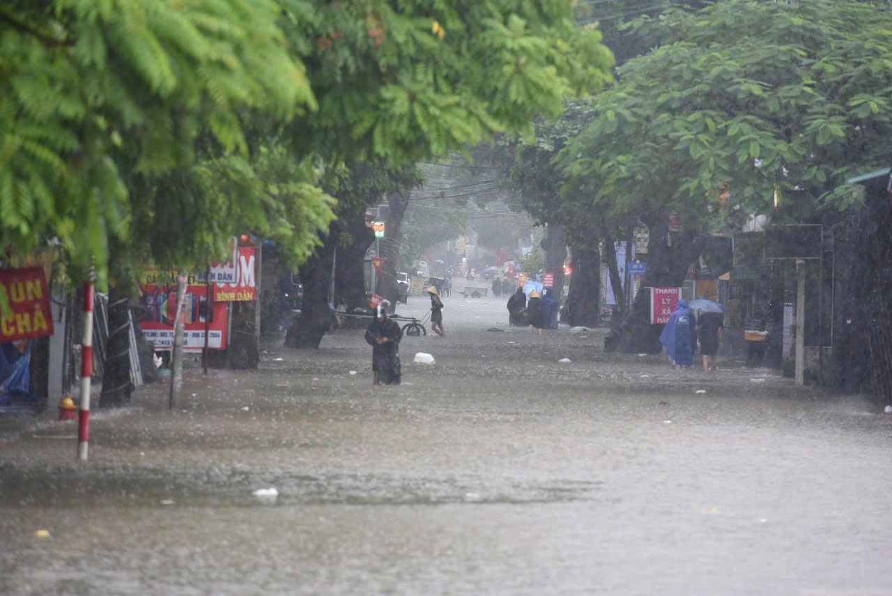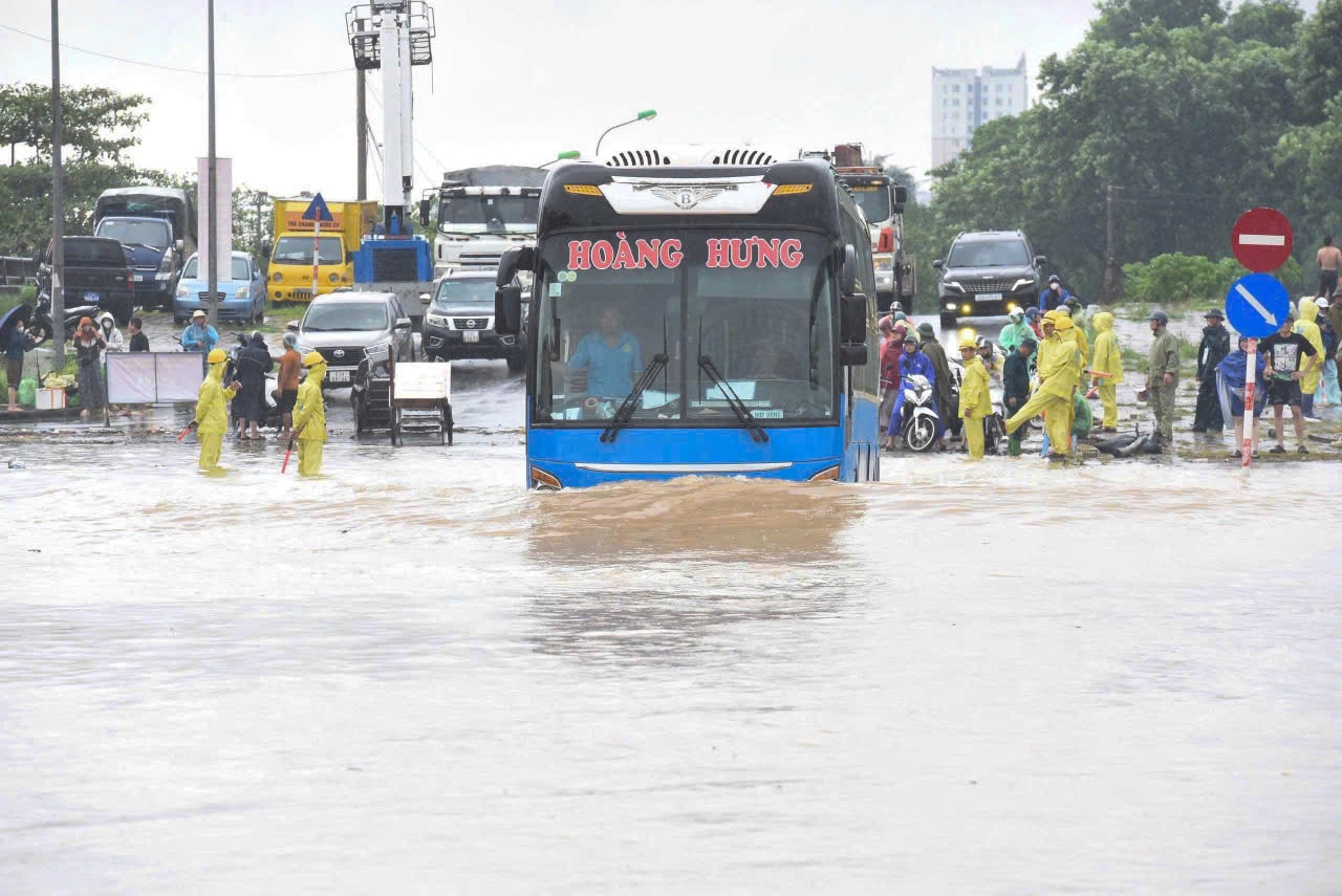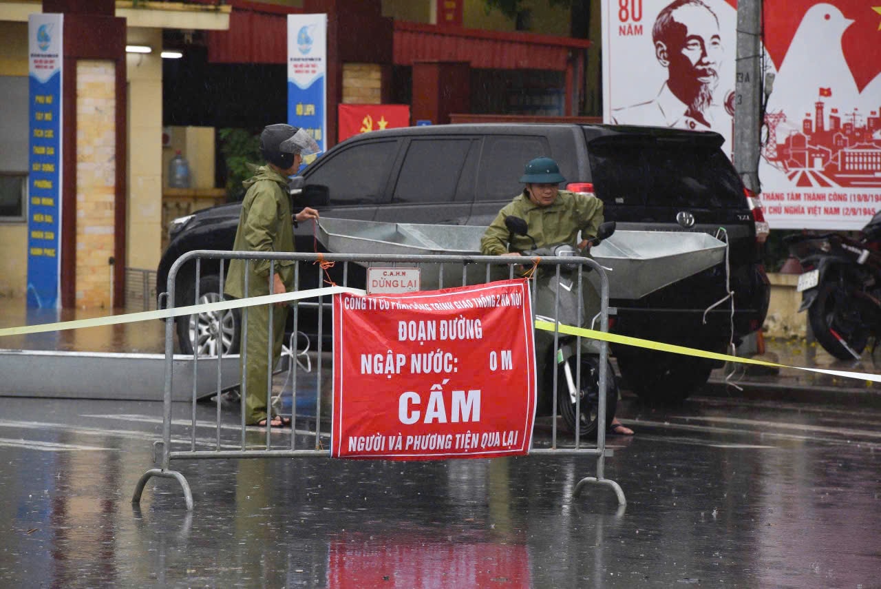 Nhiều đoạn đường ngập nước sâu được lực lượng chức năng dựng biển cảnh báo