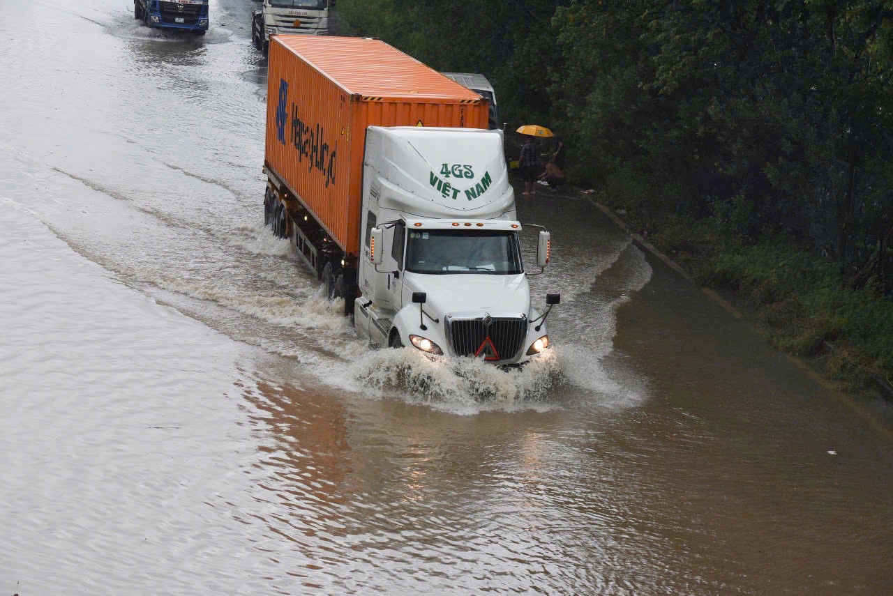 Một số xe tải cố gắng đi qua đoạn đường ngập đã bị chết máy, làm tình hình càng thêm phức tạp