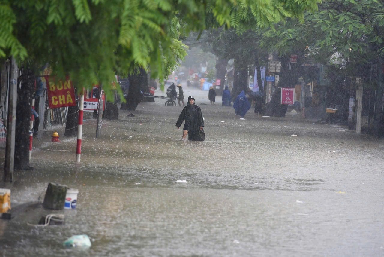 Hàng quán tại tuyến đường Tây Mỗ buộc phải tạm thời đóng cửa, chịu thiệt hại kinh tế do nước ngập sâu