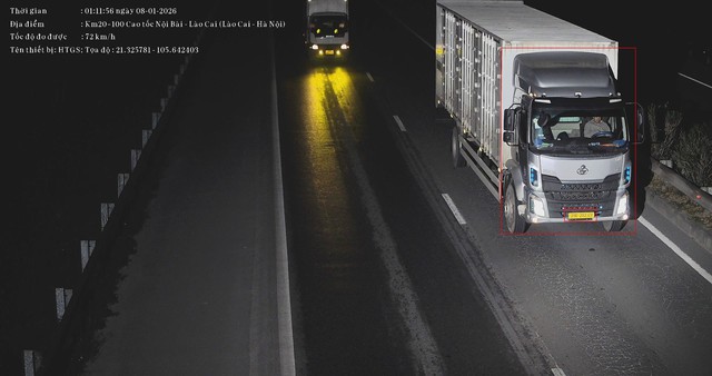 Tại Km 20 của tuyến cao tốc Nội Bài - Lào Cai, camera AI ghi nhận lưu lượng phương tiện khá lớn với 7.402 lượt xe đi qua, tốc độ trung bình đạt 97 km/h. Qua giám sát, hệ thống đã phát hiện 8 trường hợp tài xế/người ngồi trên xe không thắt dây đai an toàn, 2 trường hợp vi phạm quy định về tốc độ.