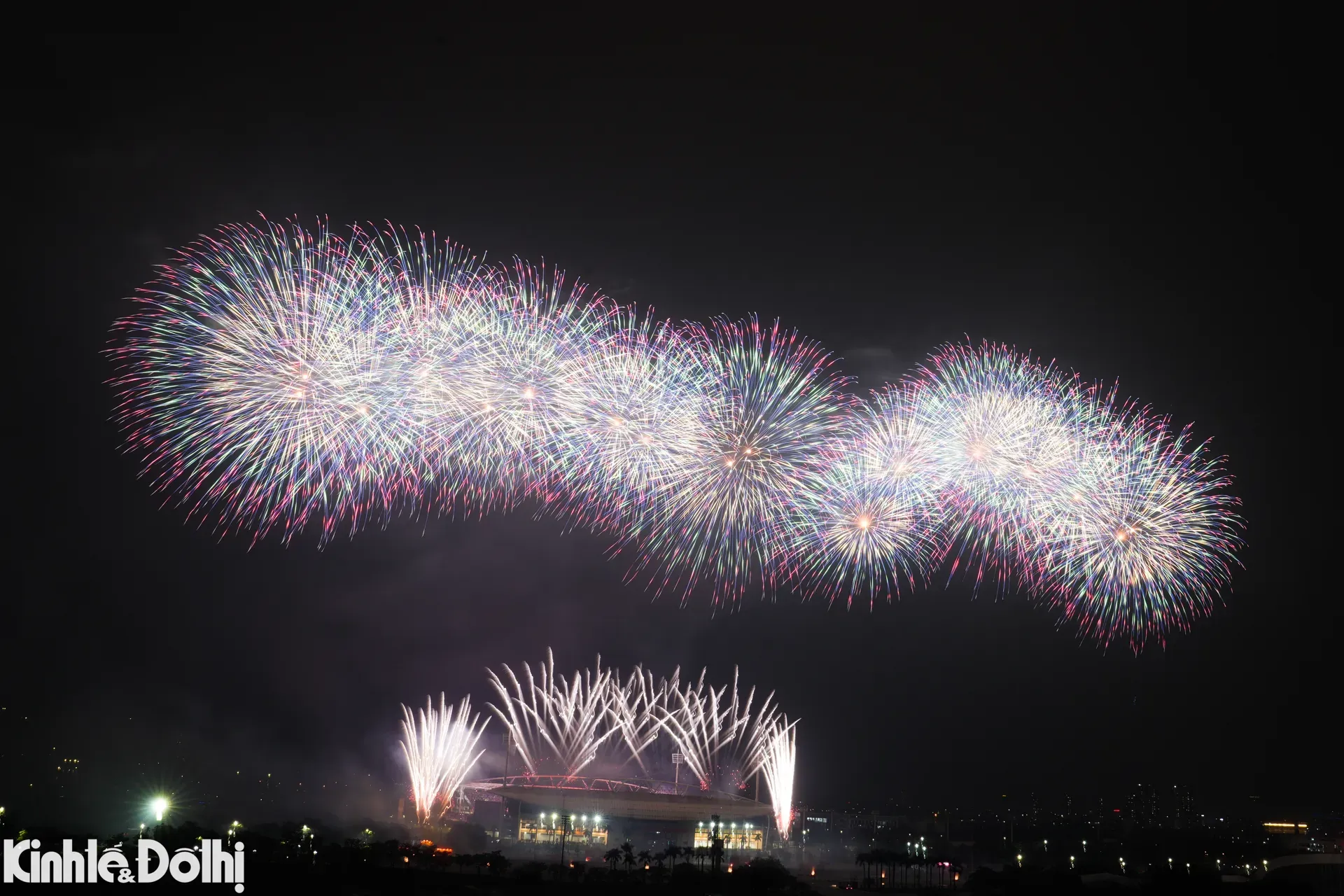 Màn pháo hoa rực sáng bầu trời Hà Nội chào mừng thành công Đại hội XIV của Đảng. Ảnh: Ngọc Tú