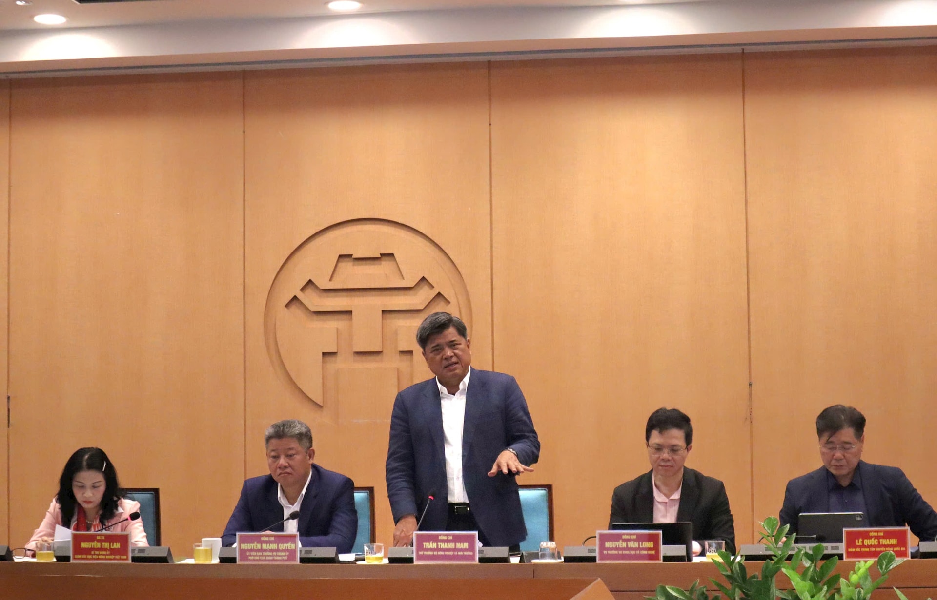Phó Chủ tịch UBND thành phố Hà Nội Nguyễn Mạnh Quyền phát biểu kết luận hội nghị. Ảnh: Nguyễn Mai