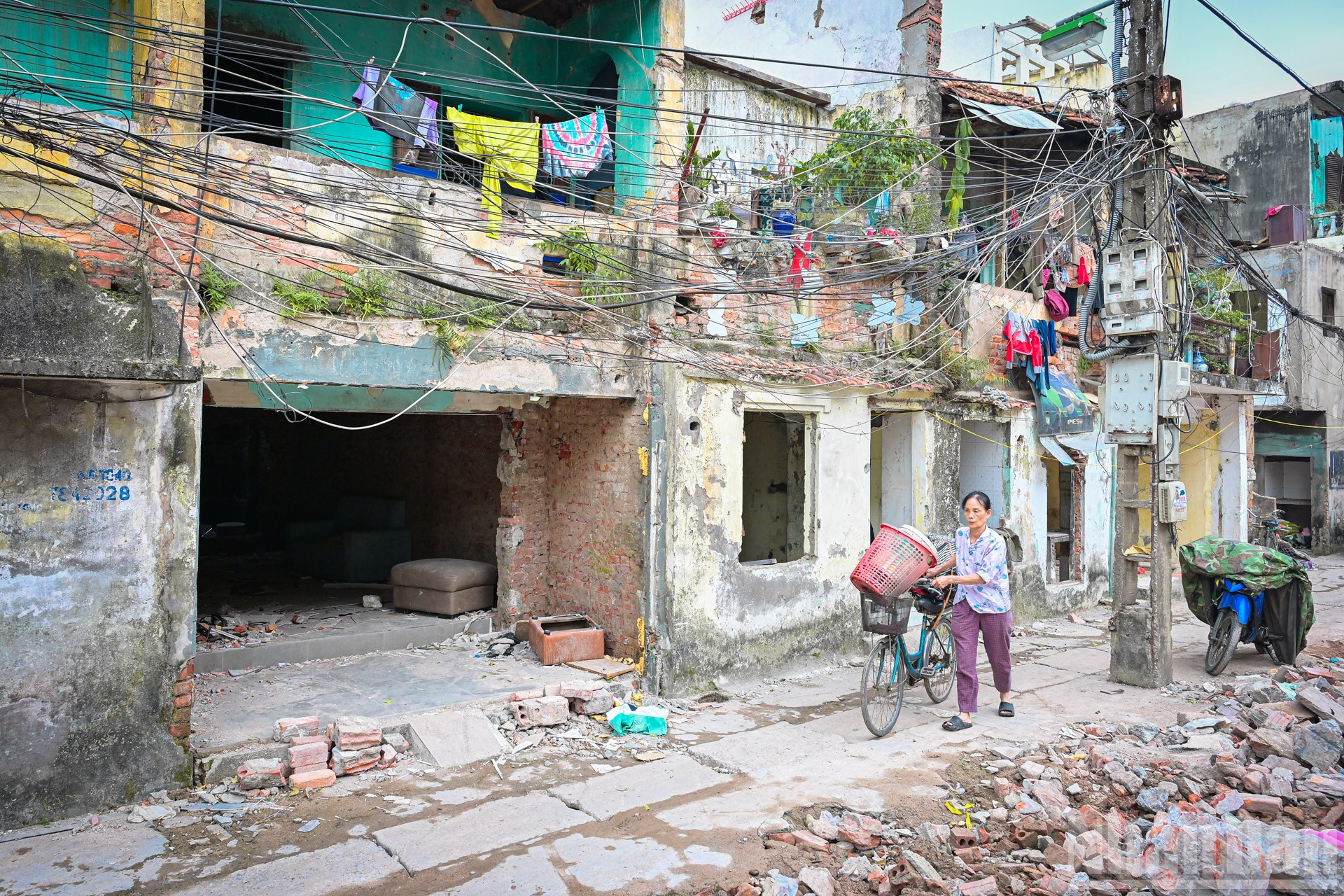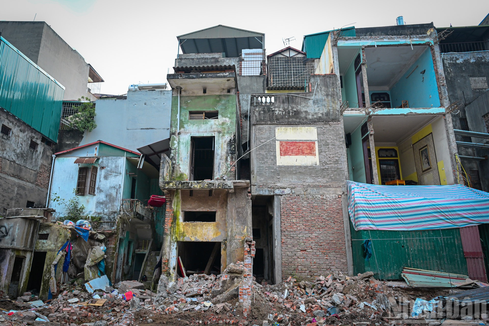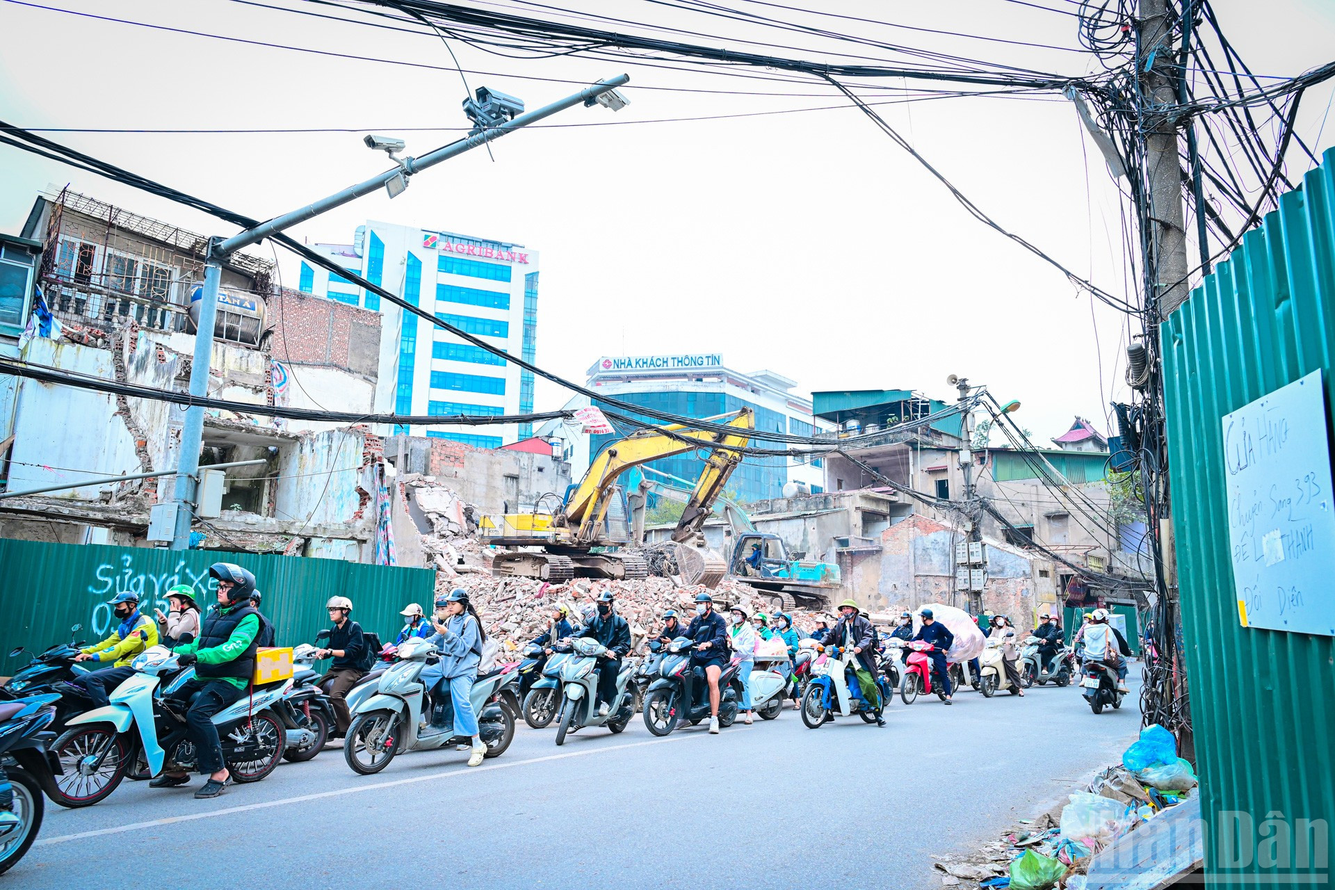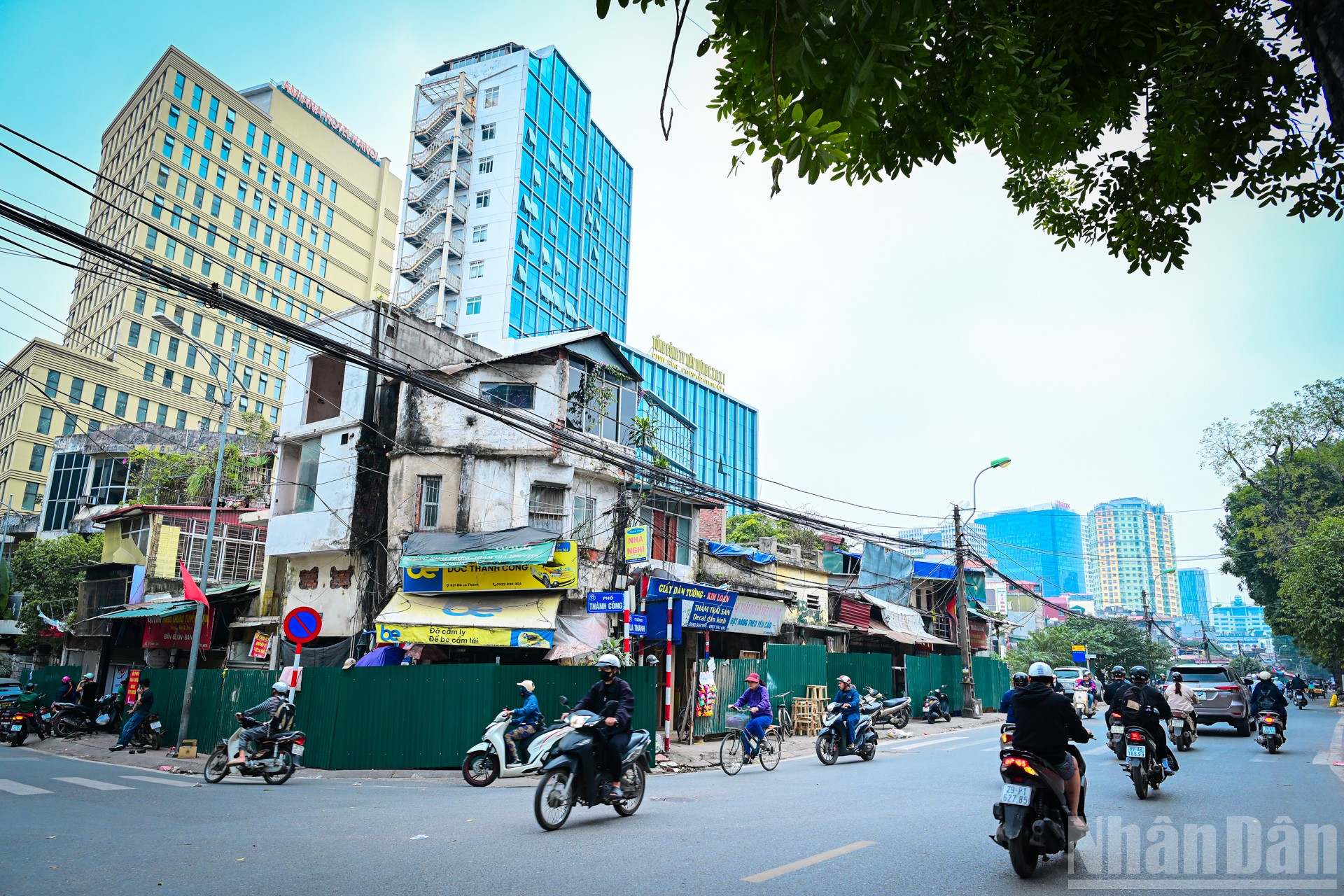 Nhiều cửa hàng trên phố Đê La Thành đã đóng cửa, treo biển chuyển địa điểm, người dân cũng gấp rút di dời tài sản. Tuy nhiên, một số hộ dân vẫn cố bám trụ phía sau lớp hàng rào tôn được quây kín.