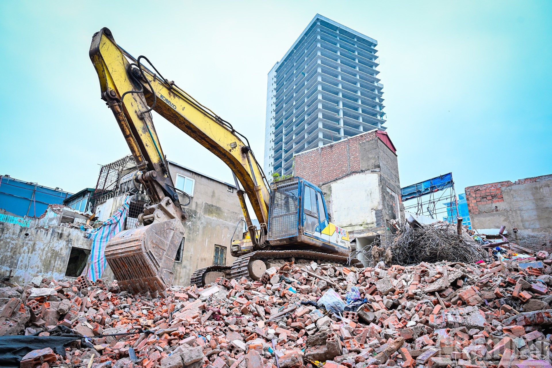 Quá trình phá dỡ các công trình không ảnh hưởng đến giao thông trên tuyến đường Đê La Thành.