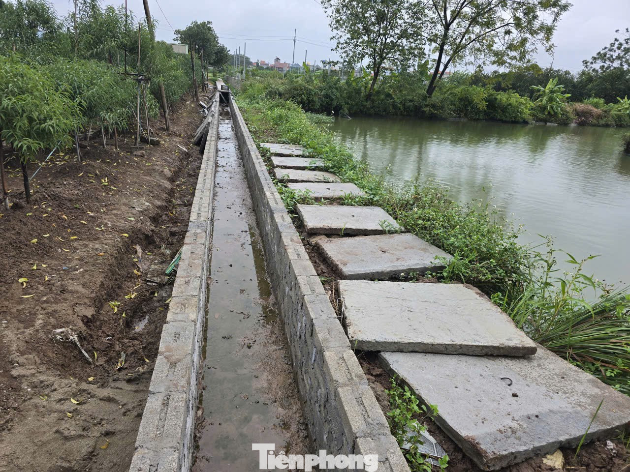 Từ 5 năm trước, người dân đã nhiều lần gửi đơn lên UBND xã đề nghị cứng hóa kênh mương phục vụ sản xuất. Tại các hội nghị tiếp xúc cử tri, cử tri cũng đề nghị UBND xã hỗ trợ nhân dân cứng hóa kênh mương. Chính quyền địa phương cũng ủng hộ, vận động người dân làm mương kiên cố phục vụ sản xuất. Sau đó, hàng chục hộ dân đã tự nguyện hiến 2m đất bề ngang để mở rộng bờ mương, đồng thời tự nguyện đóng tiền để cứng hóa mương tiêu. Từ 7/2025, công trình được người dân triển khai và cử ông Phùng Minh Văn đại diện để thu tiền, giám sát xây dựng.