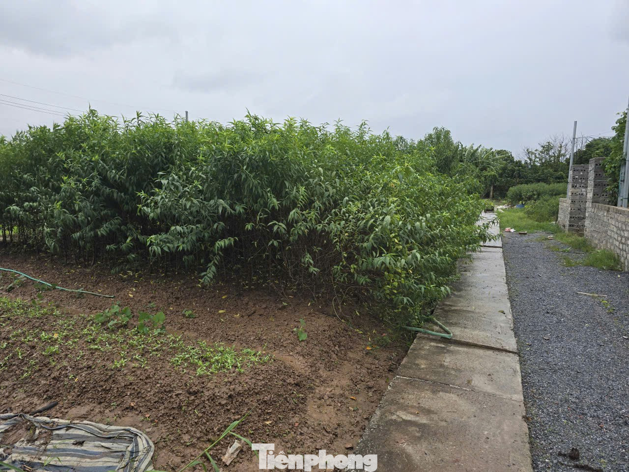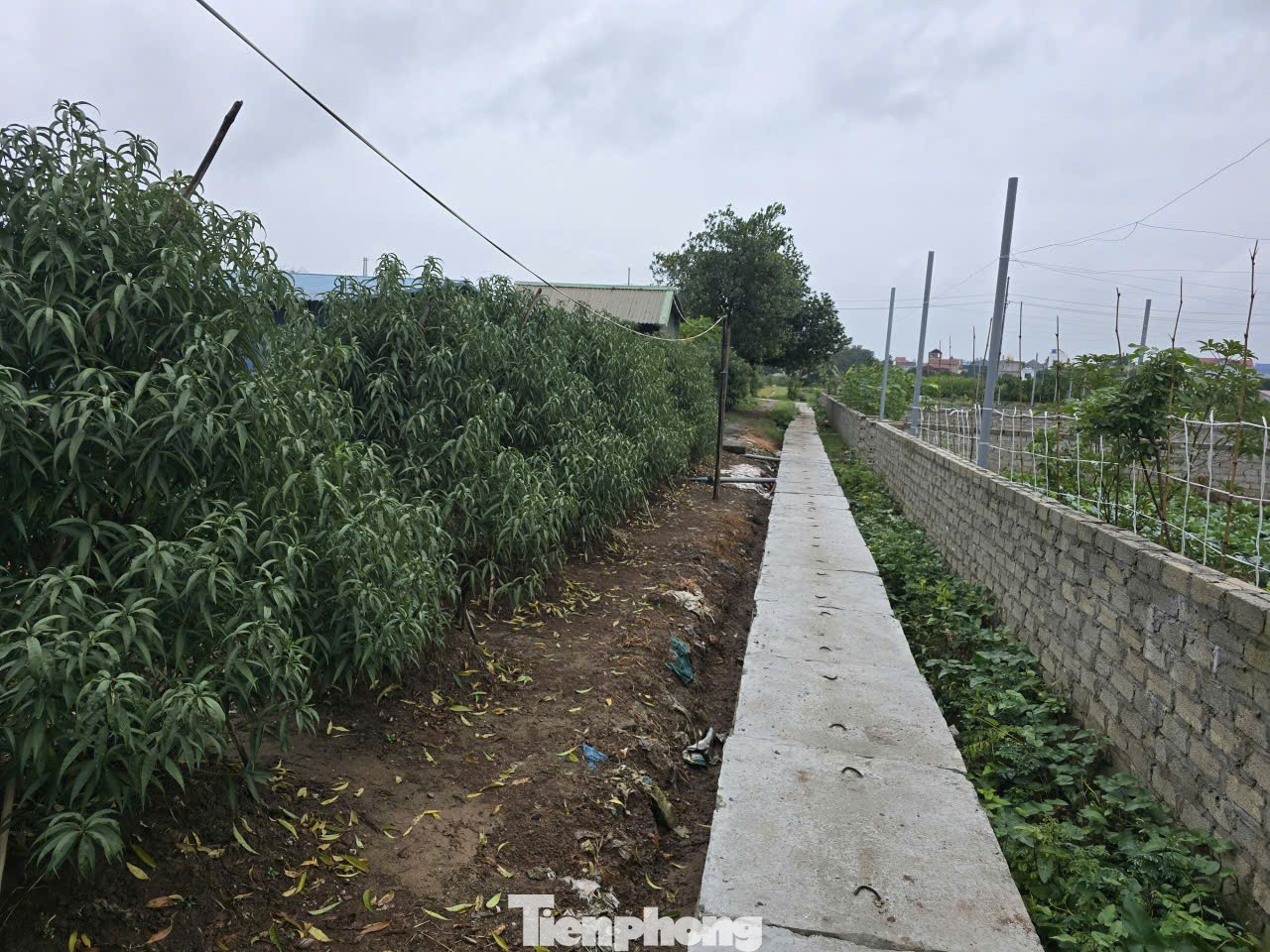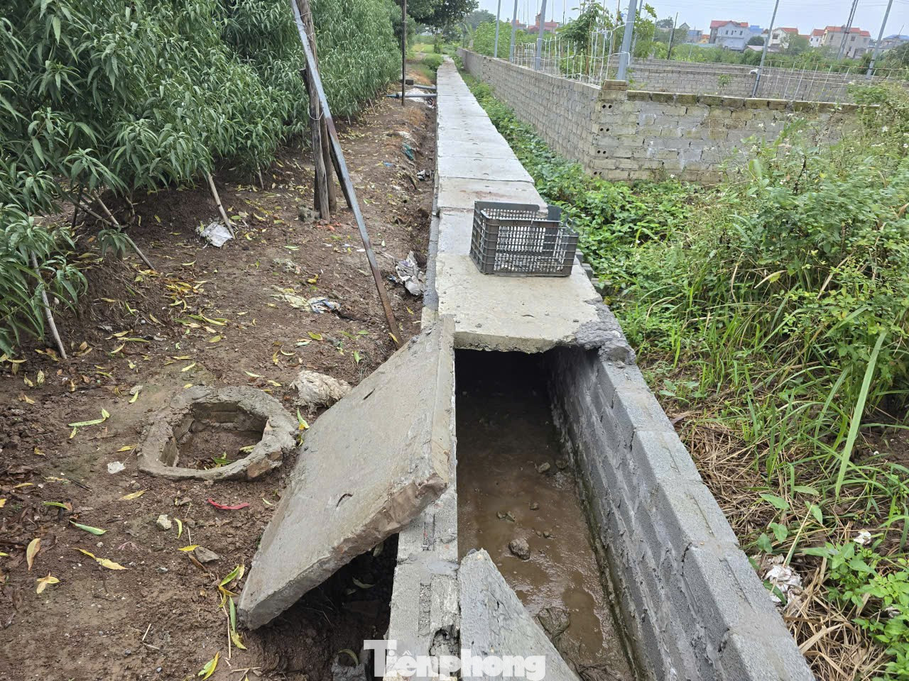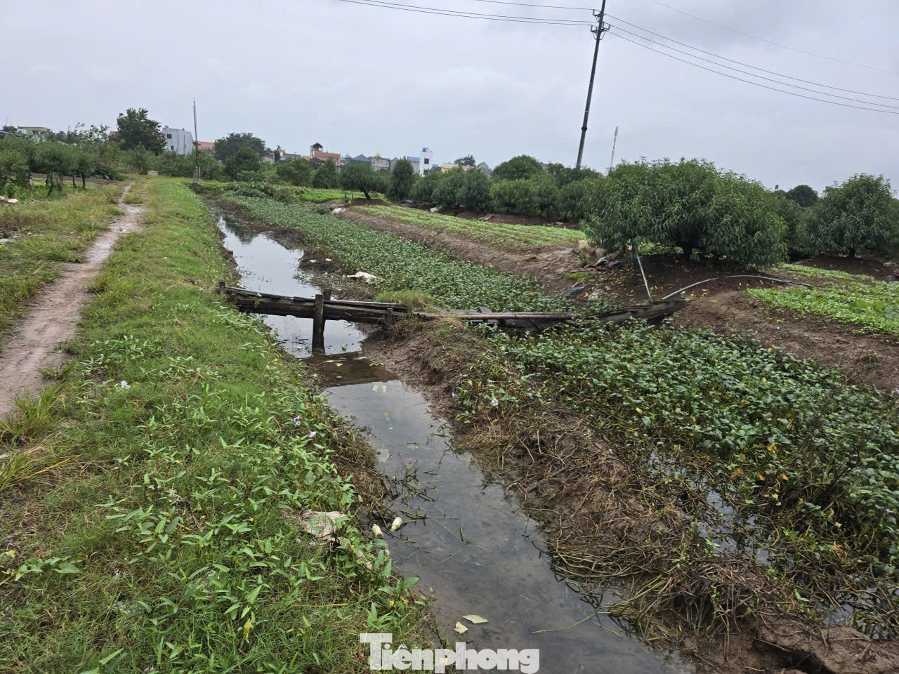 Theo ông Văn, trước đây bờ mương và lòng mương rộng khoảng 2m. Tuy nhiên, do không được nạo vét nên lòng mương dần thu hẹp, thậm chí có đoạn còn cao gần bằng mặt ruộng nên chức năng tiêu nước không còn. Do đó, mỗi khi mưa, rau màu của người dân lại bị ngập nước, ảnh hưởng đến sản xuất nông nghiệp (ảnh: Đoạn mương người dân đã hiến 2m đất để mở rộng bờ làm đường đi nhưng chưa được cứng hóa lòng mương).