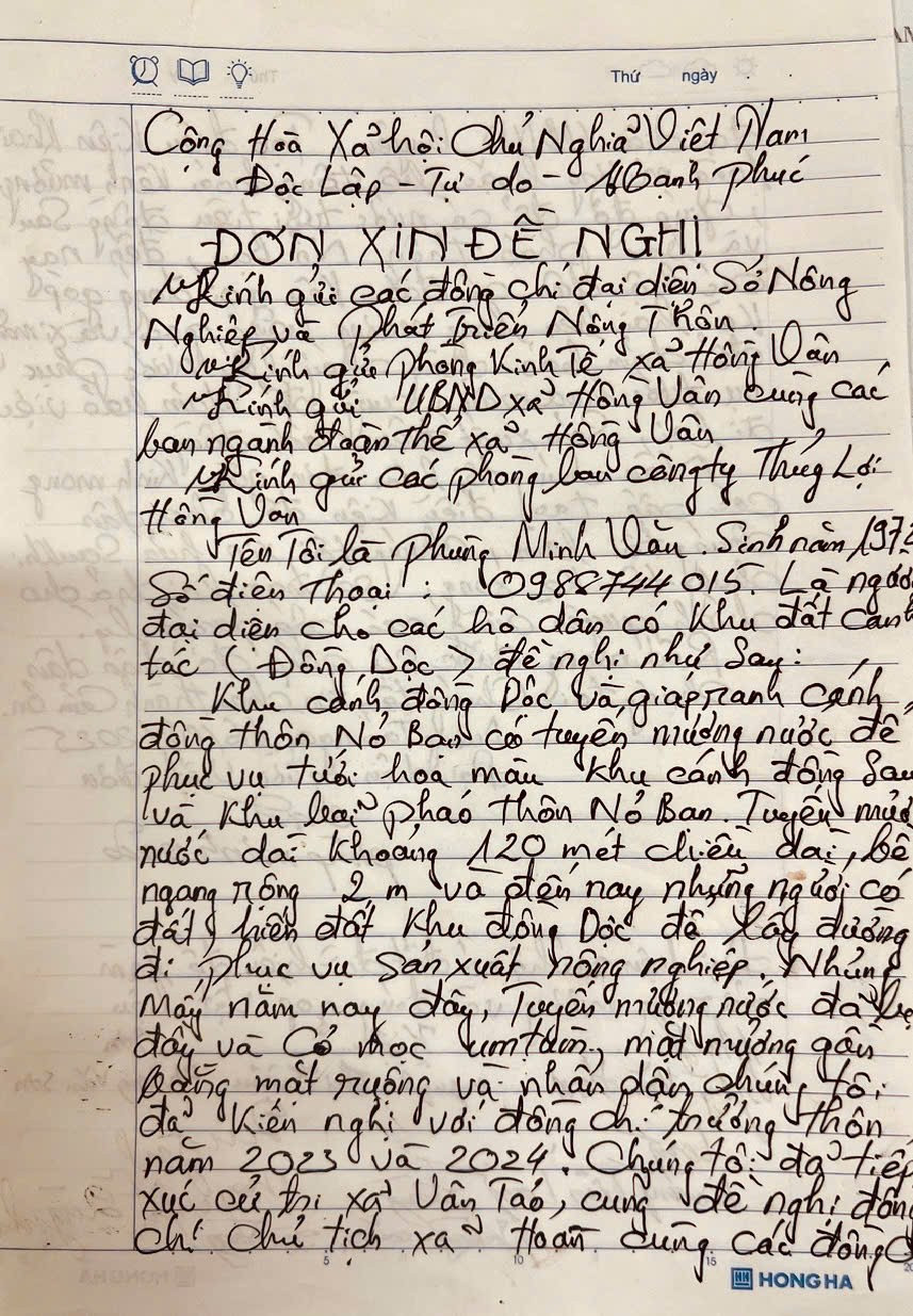 Những ngày này, nhiều hộ dân tại thôn Nỏ Bạn và Dương Tảo (xã Hồng Vân) rất bức xúc khi đoạn mương tiêu dài gần 200m do người dân hiến đất, tự bỏ tiền cứng hóa vừa hoàn thành có nguy cơ bị đập bỏ. Thậm chí, người đại diện đứng ra quyên góp còn bị đề nghị xử phạt vi phạm hành chính.