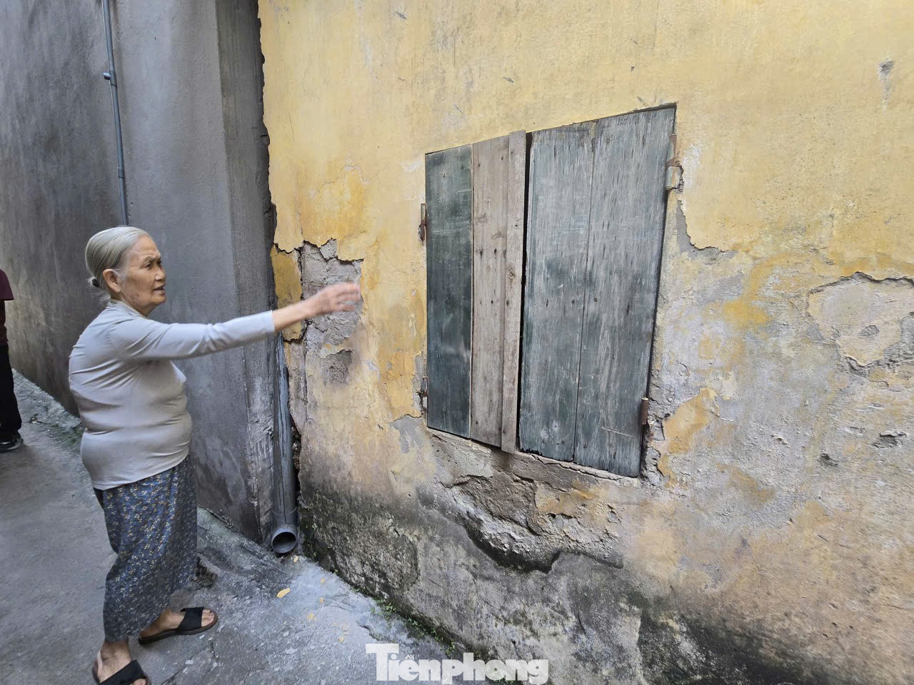 Căn nhà của gia đình bà Bà Đinh Thị Hiền (số 105 Nguyễn Văn Giáp) là dãy nhà cấp 4 lụp xụp được lợp bằng tấm blo xi măng, được xây dựng từ năm 1989. Hiện nhiều vị trí tường đã nứt, vôi vữa bong tróc.