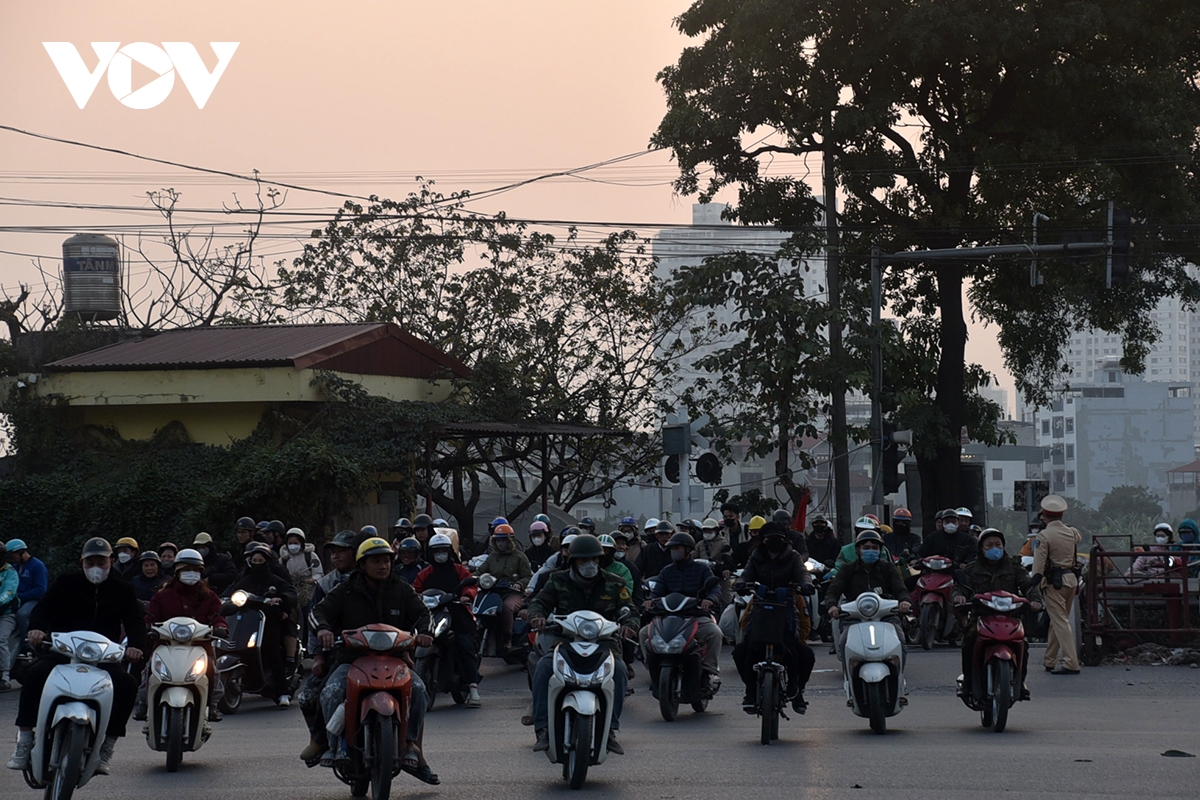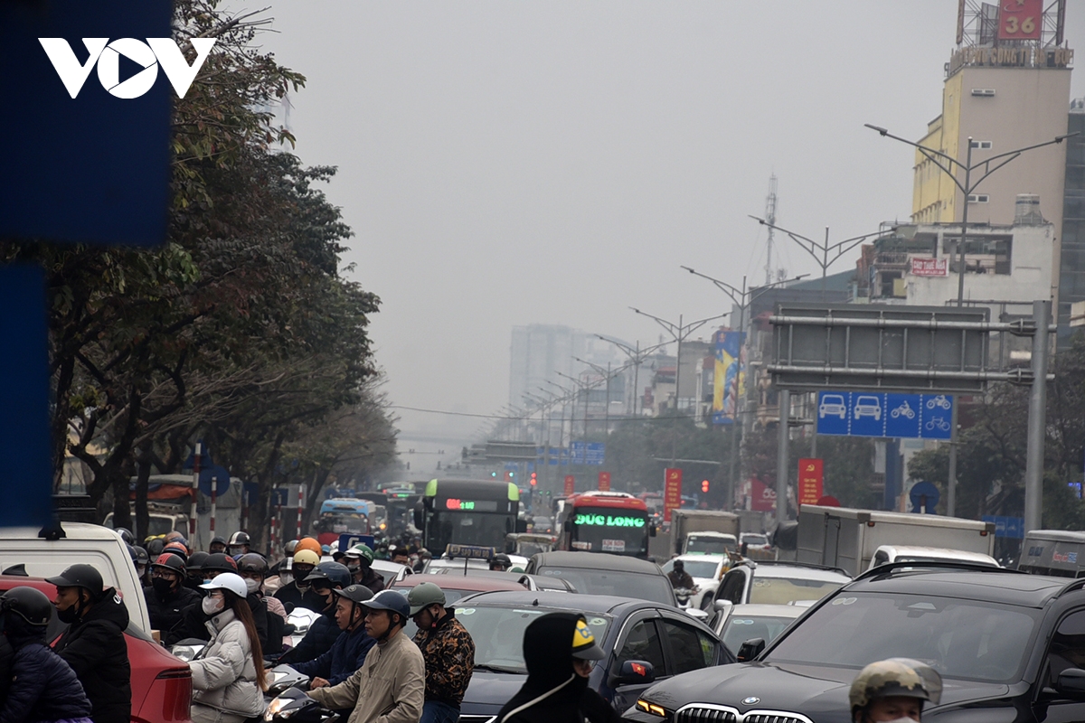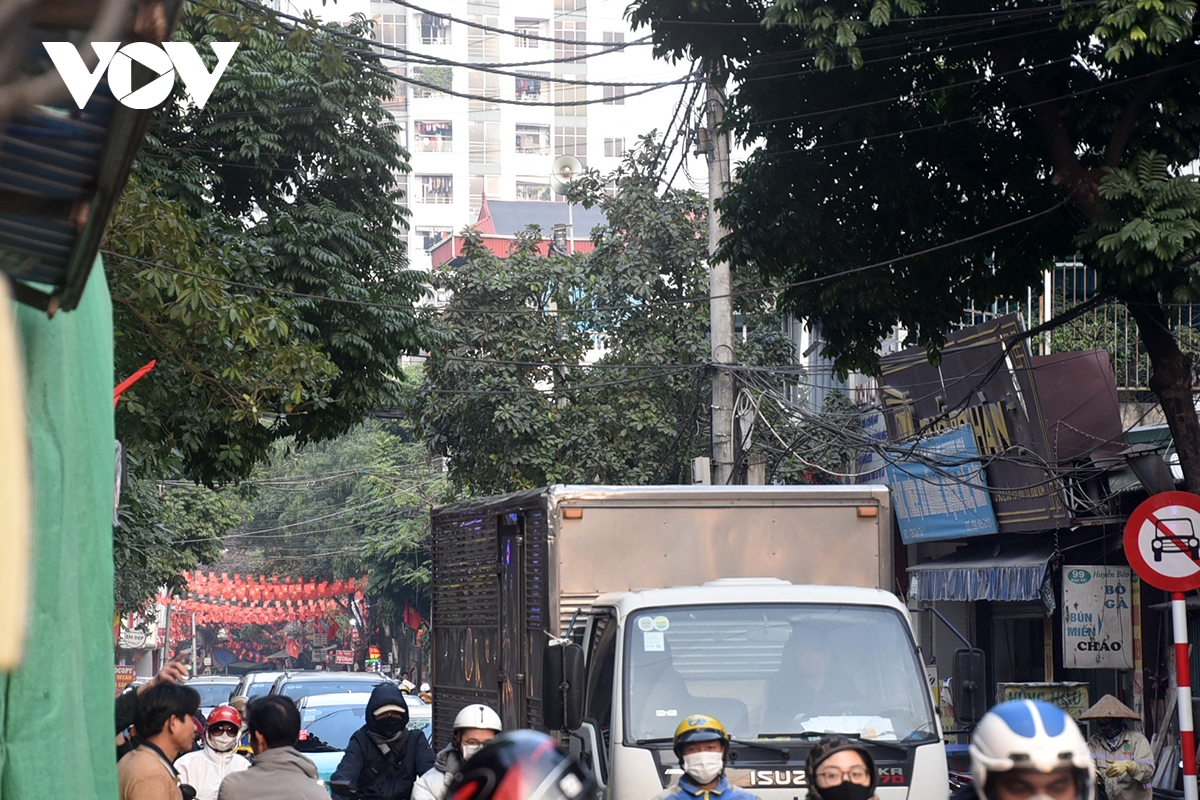 Mỗi khi có tàu hỏa chạy qua, giao thông bị tắc nghẽn nghiêm trọng. Riêng sáng 2/2, đến 9h20 phút đã có 8 chuyến tàu chạy qua, trong đó 4 chuyến liên tiếp, khiến dòng xe ùn tắc kéo dài đến khu vực bến xe Giáp Bát.