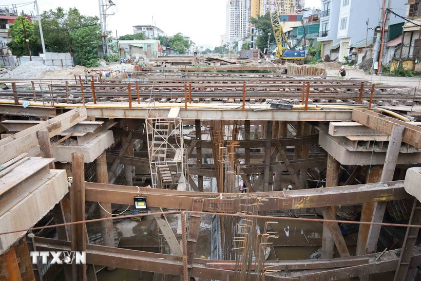 Thi công hầm chui Giải Phóng-Kim Đồng. (Ảnh: Vũ Quang/TTXVN)