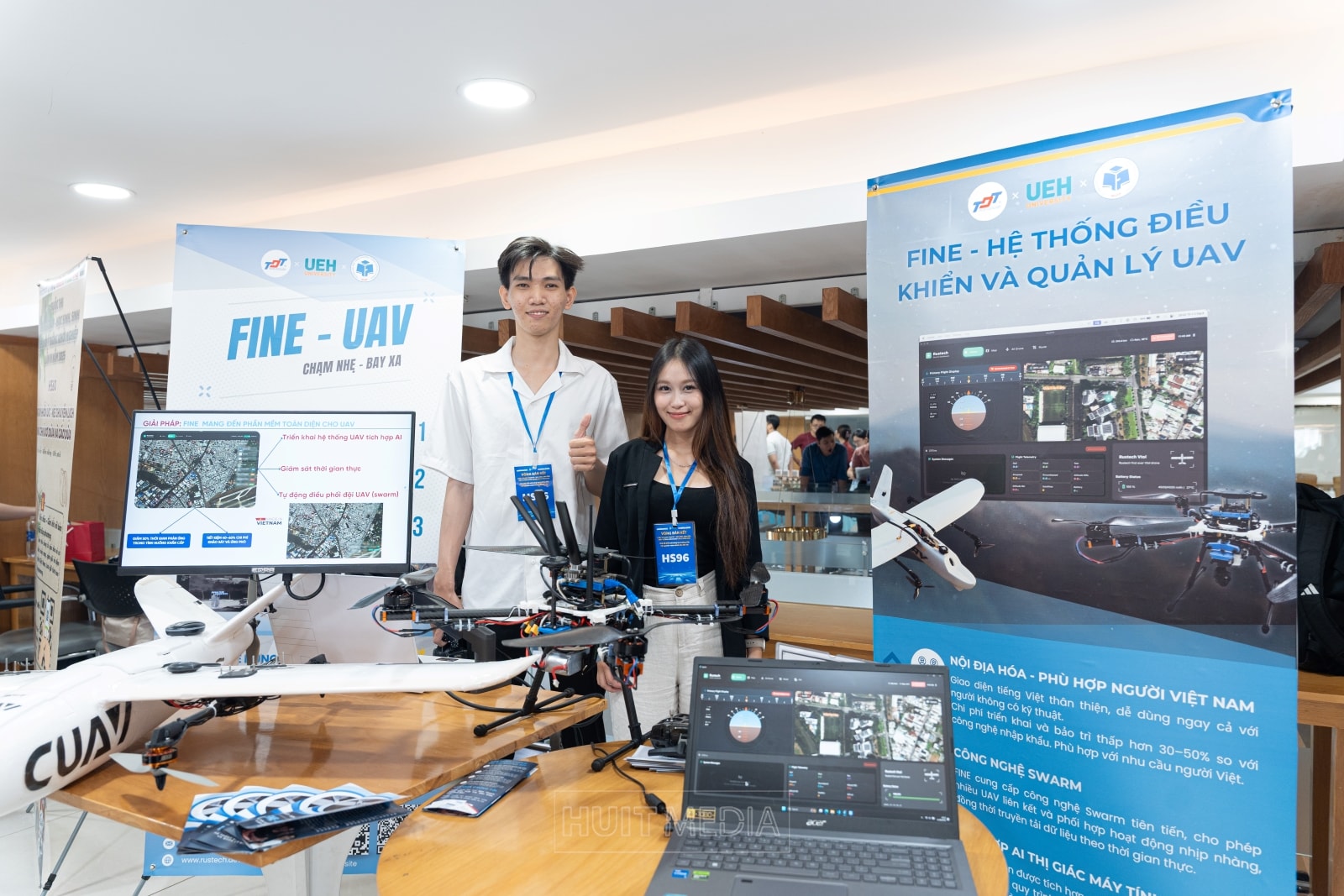Các đội trong ngày hội khởi nghiệp đổi mới sáng tạo và chung kết cuộc thi HUIT startup lần 6. Ảnh: Thái Sơn