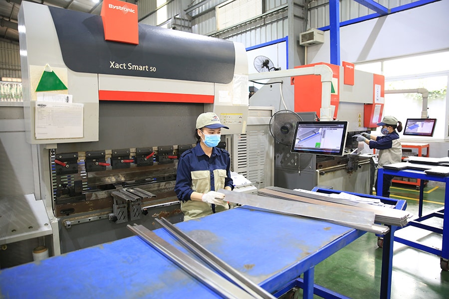 Sản xuất thiết bị điện tại Công ty cổ phần Kỹ thuật công nghiệp Á Châu (Cụm công nghiệp Quất Động). Ảnh: Đỗ Tâm